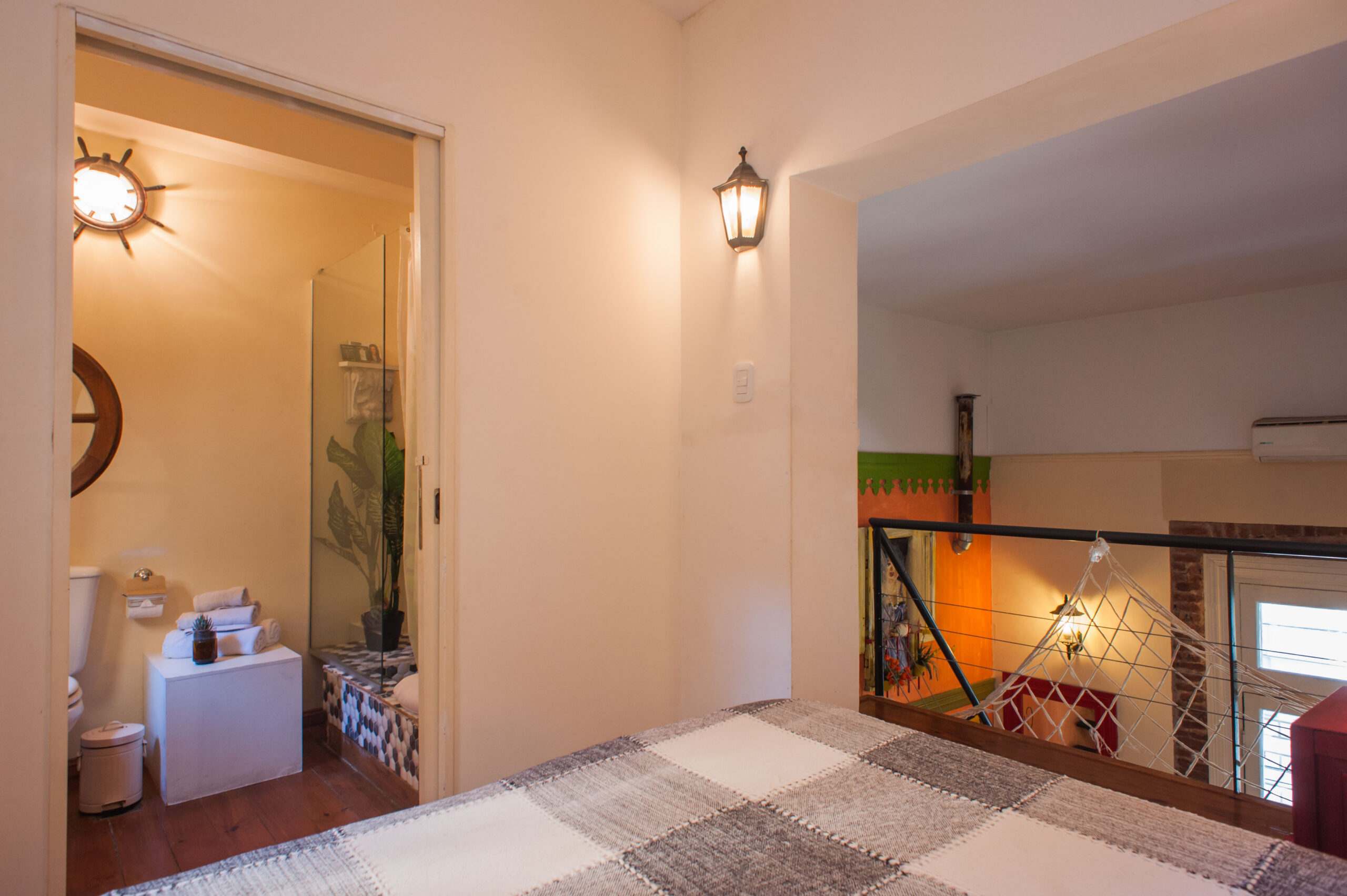 LA BOCA ROOM : Capacidad para cuatro personas. 1 cama doble y 1 sofá doble, baño privado, superficie aprox. 23mts cuadrados. Situada en primer piso.