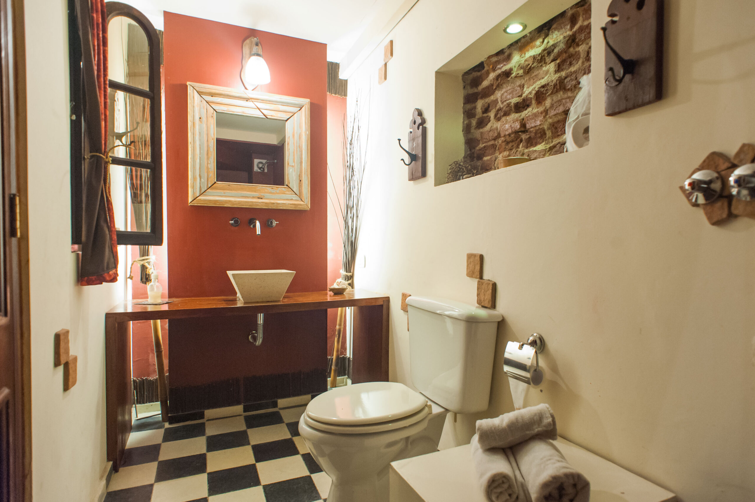 SAN TELMO ROOM : Capacidad para tres personas. 1 cama doble y otra single, baño privado, ventana pequeña, superficie aprox. 22mts cuadrados. Situada en planta baja con entrada privada, ventilación y aire acondicionado con sala de estar, dormitorio independiente y baño con ducha. Dispone de zona de estar, armario, zona de comedor al aire libre y patio.