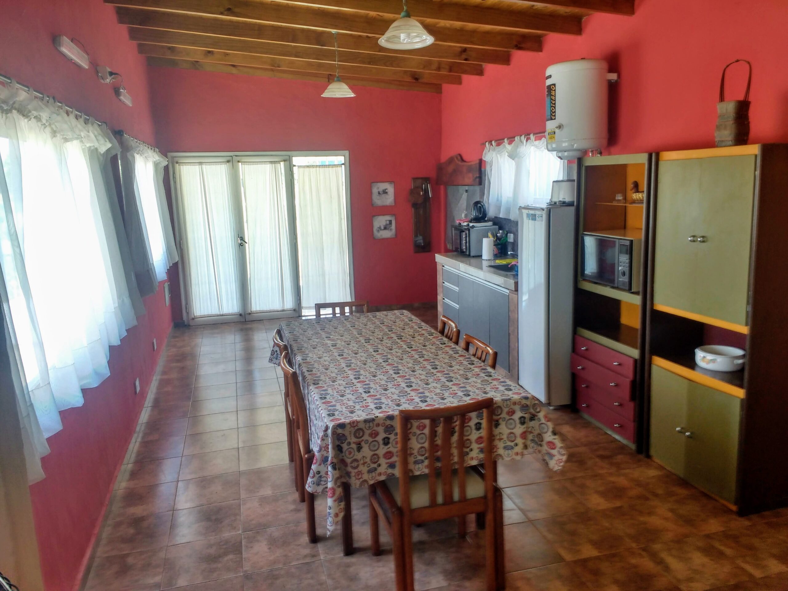 Comodidades para seis huéspedes. Incluye: cocina comedor , living comedor con dos diván cama para 4 personas, dormitorio matrimonial, baño con ducha, fogón, parrilla y ducha exterior Equipada con : aire acondicionado frío/ calor, cocina con horno, pava, tostadora, microondas, termo tanque , heladera ,directv, alarma , WiFi , cochera descubierta techada ,secador de pelo, batería de cocina y vajilla , almohadas y cubrecamas, (no posee ropa blanca)