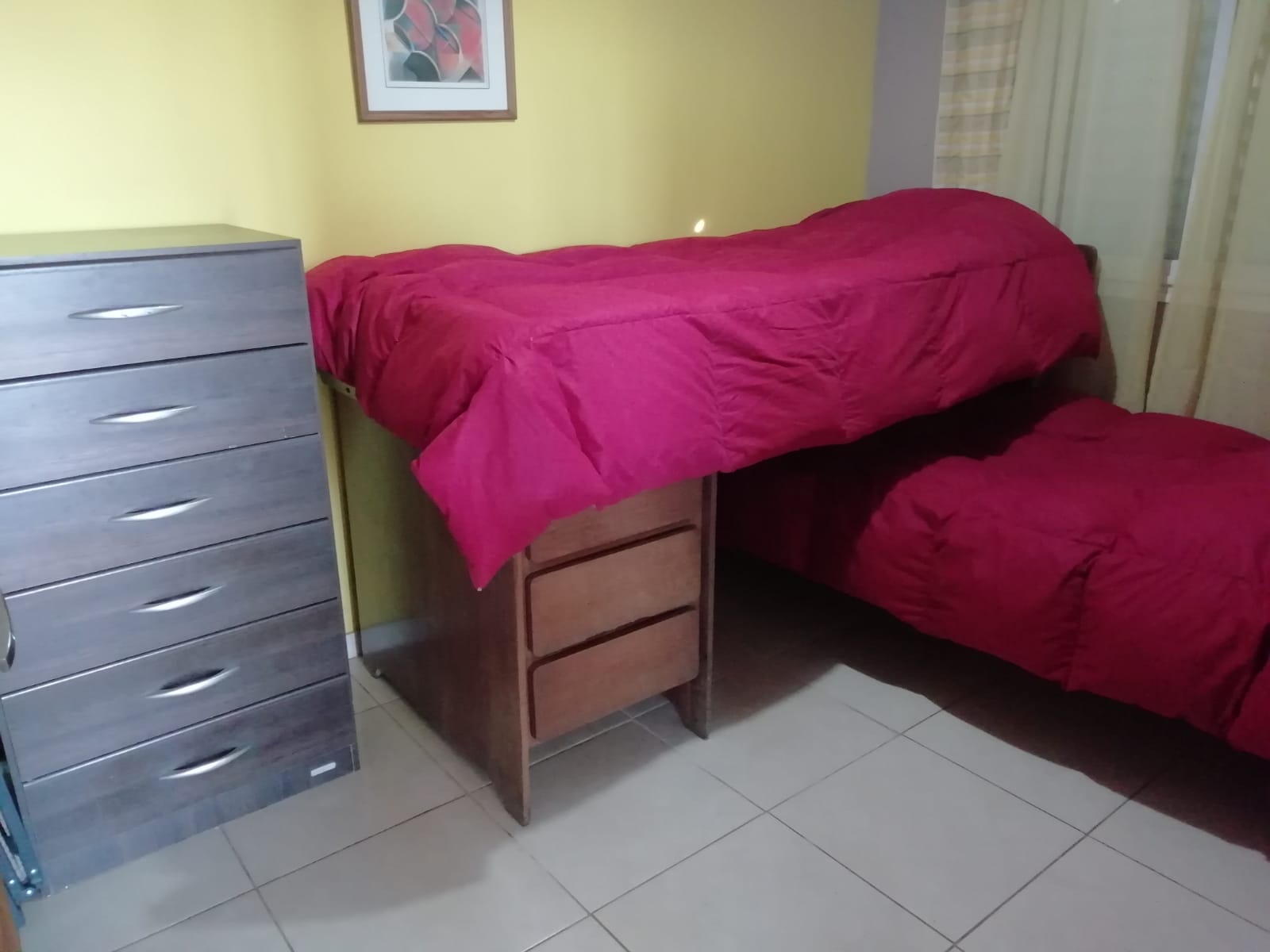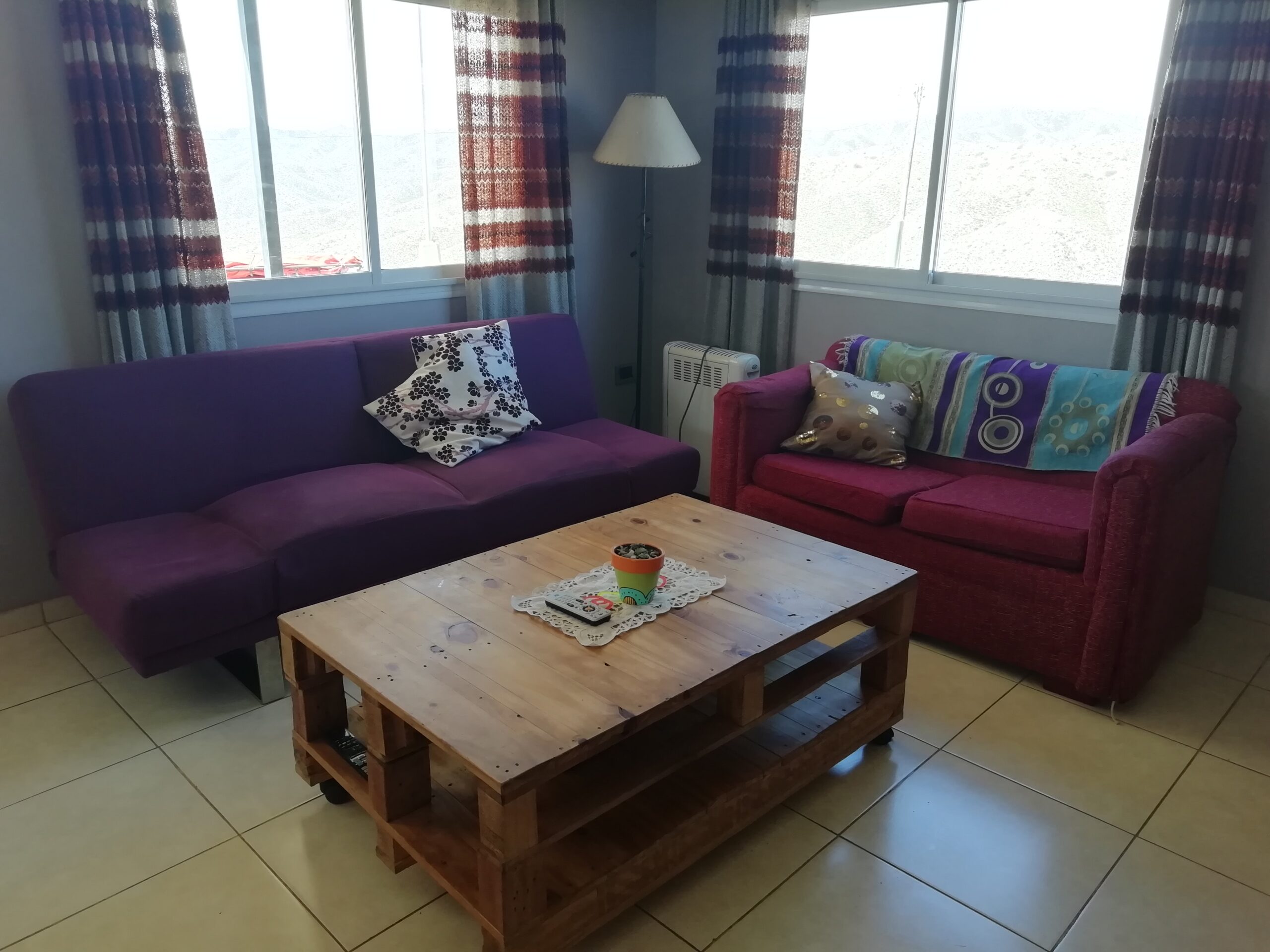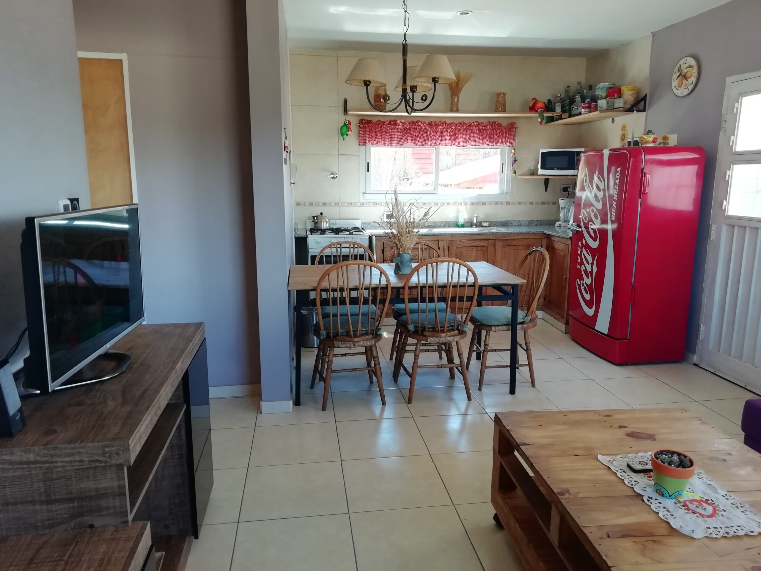 Cuenta con dos habitaciones (una matrimonial y otra con dos camas individuales), cocina equipada,
