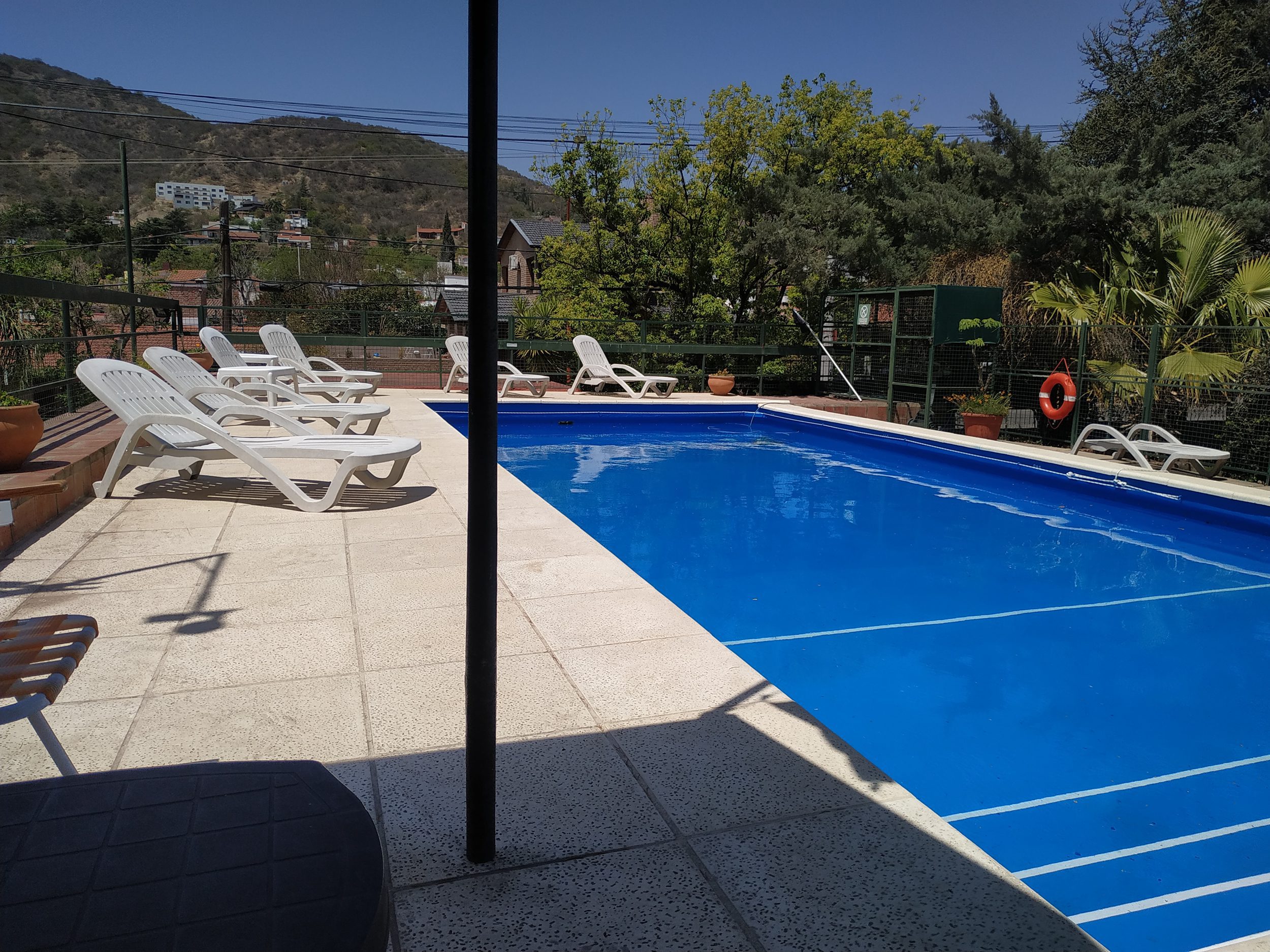 Pileta y solarium con vista a las sierras