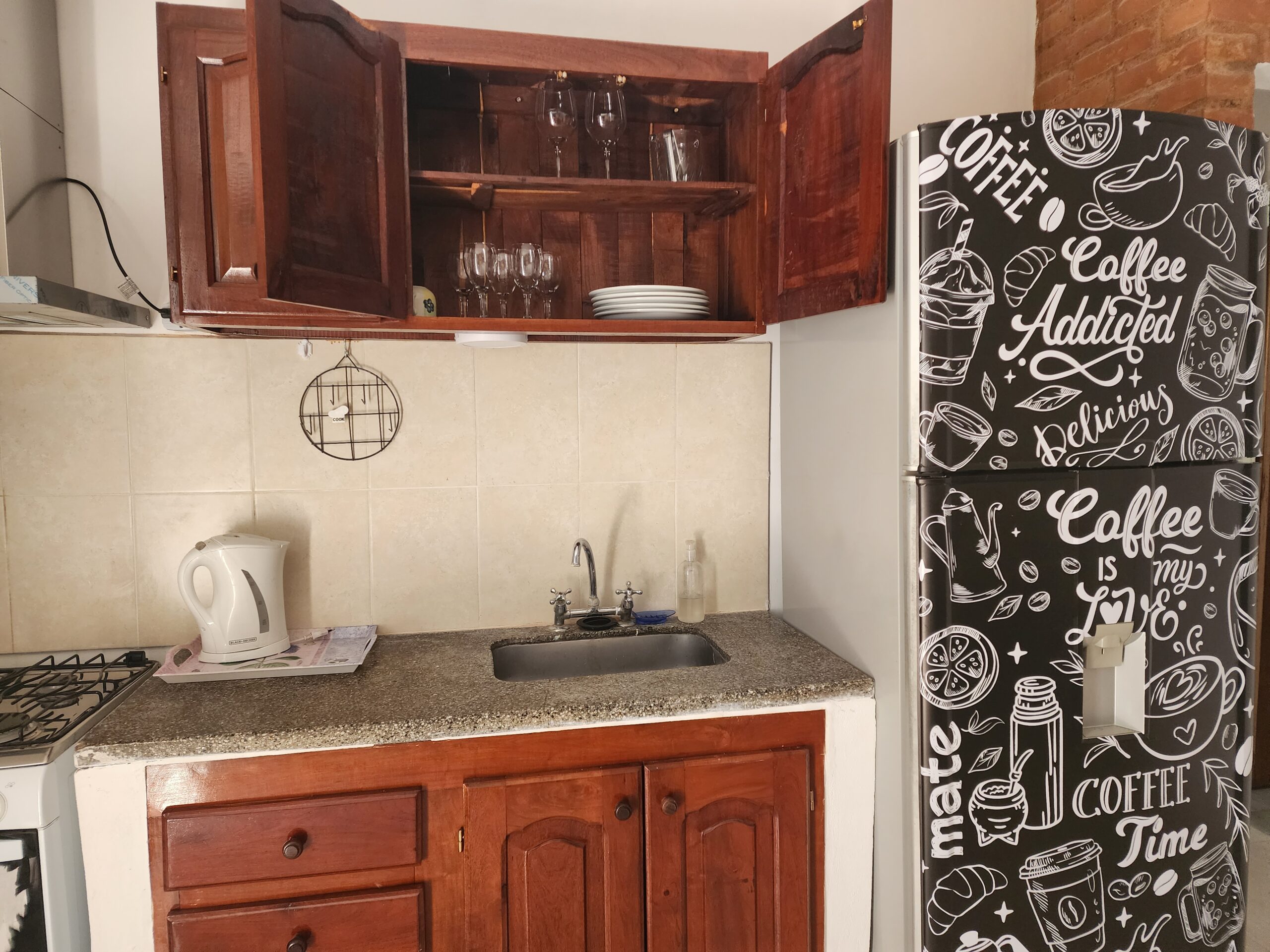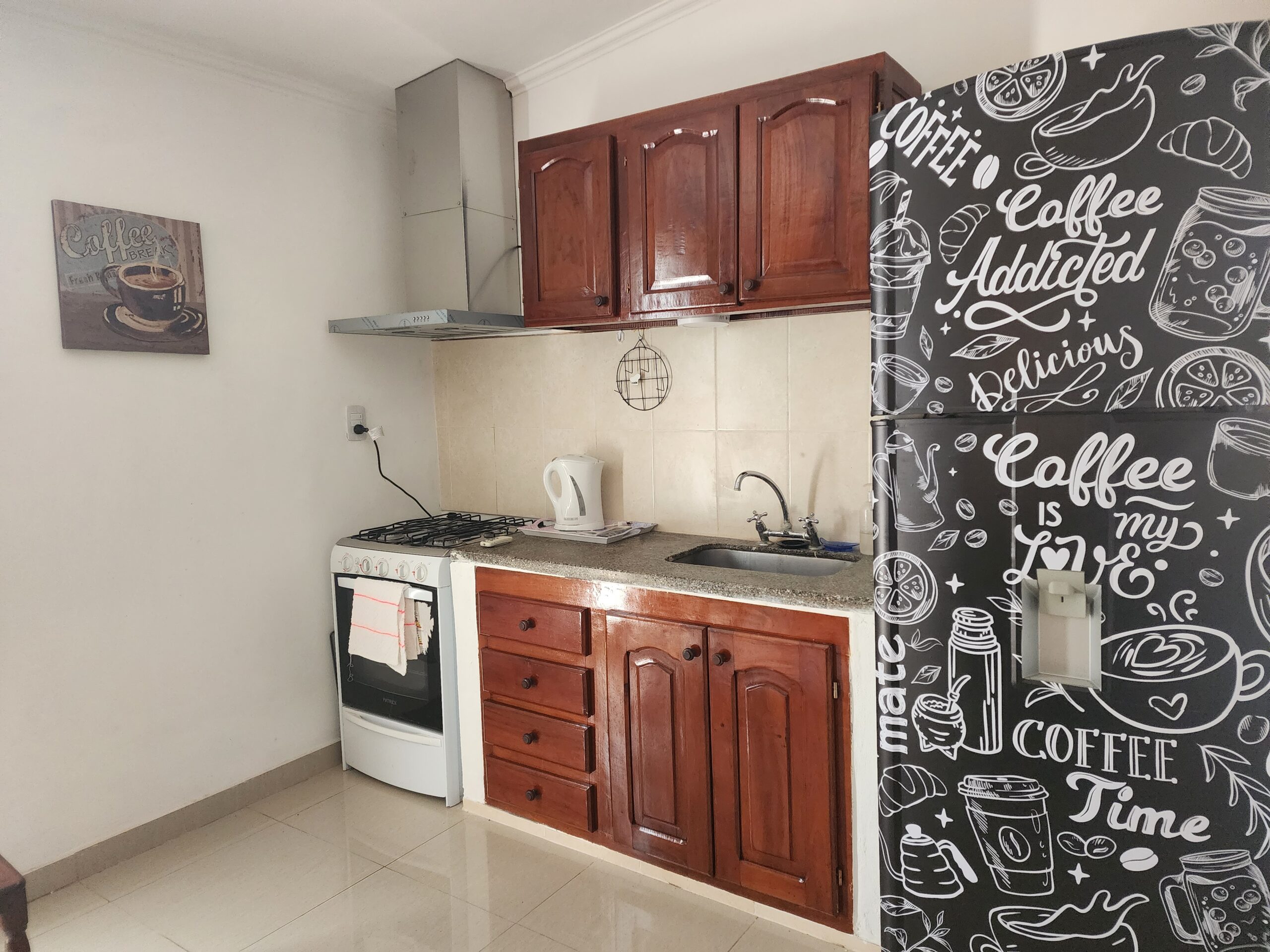 La cocina dispone de heladera, cocina a gas, pava eléctrica y vajilla completa. En el comedor, un ambiente luminoso y funcional te invita a compartir tus comidas o momentos de descanso.