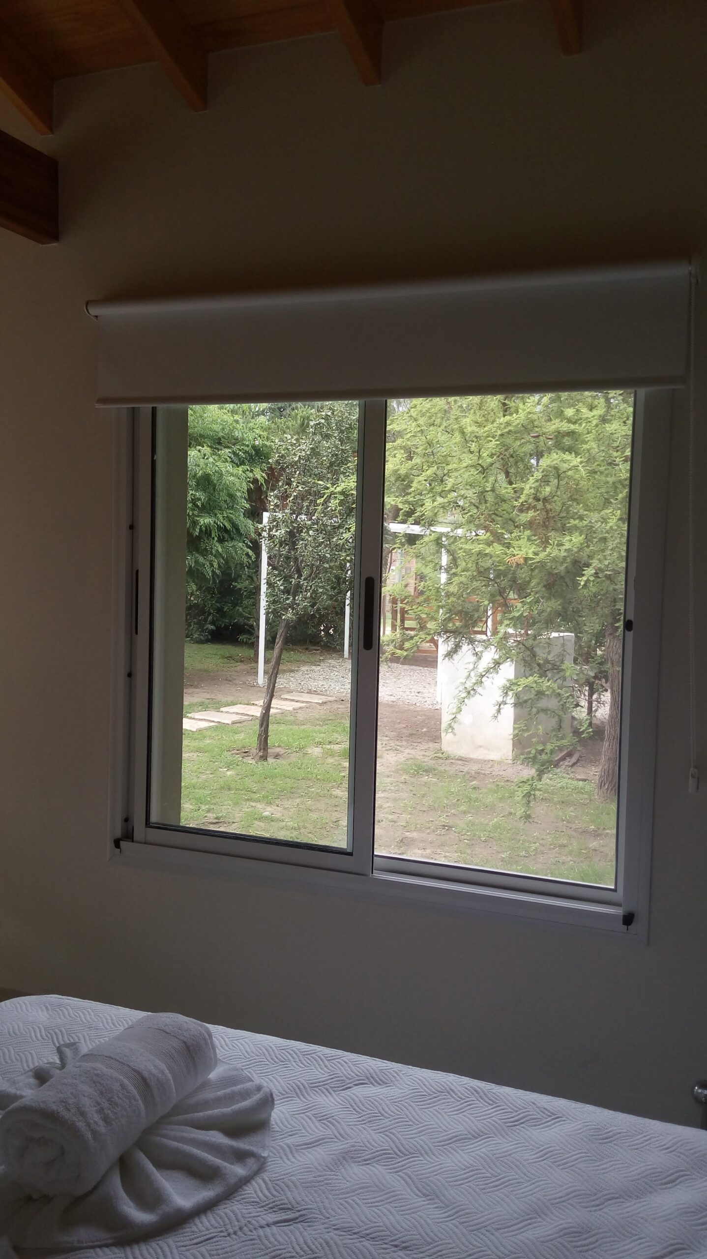 La cabaña es nueva, construcción moderna, cómoda, un dormí con cama doble, baño completo, cocina con desayunador, estar con vista a la sierra y porch.