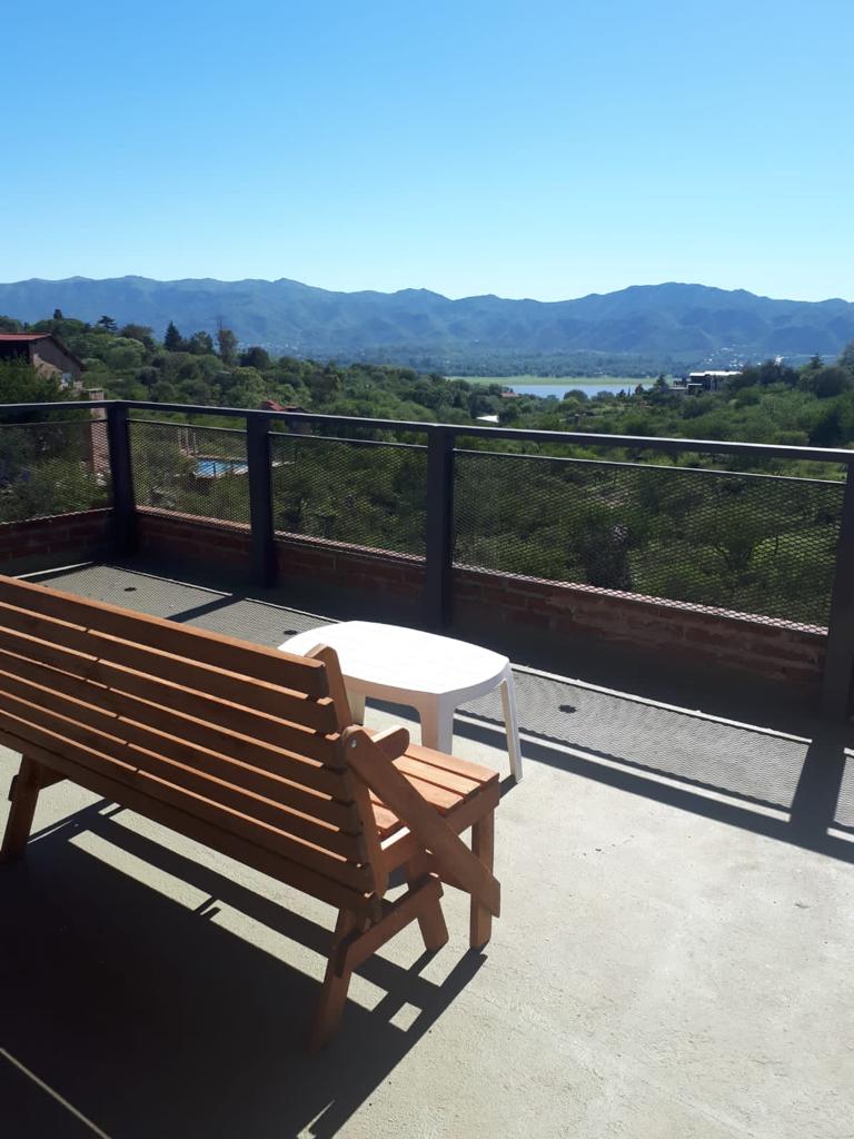 Casa amplia, con 2 dormitorios en planta baja con vistas a las sierras y Lago San Roque, cocina y living comedor, antebaño y baño con gran balcón. En planta alta un loft con baño propio y gran terraza. Parque de 3mil m2, cochera y pileta exclusiva.