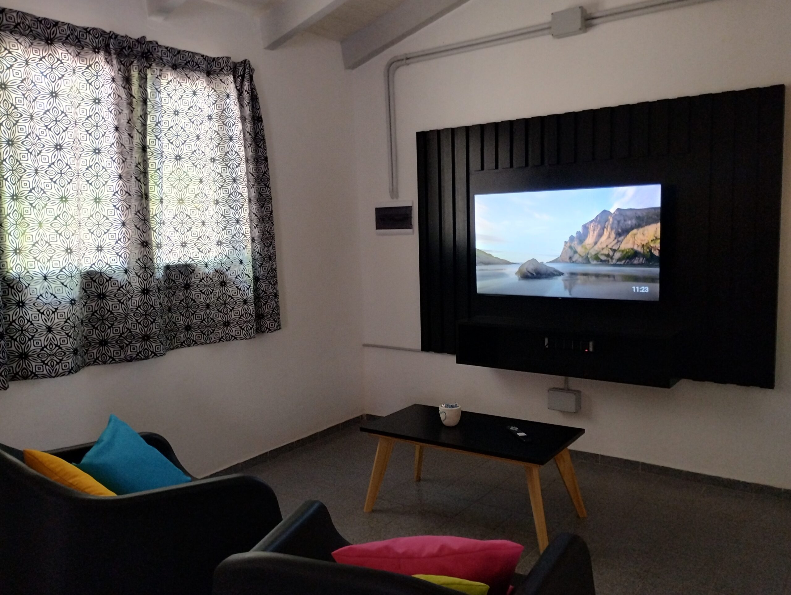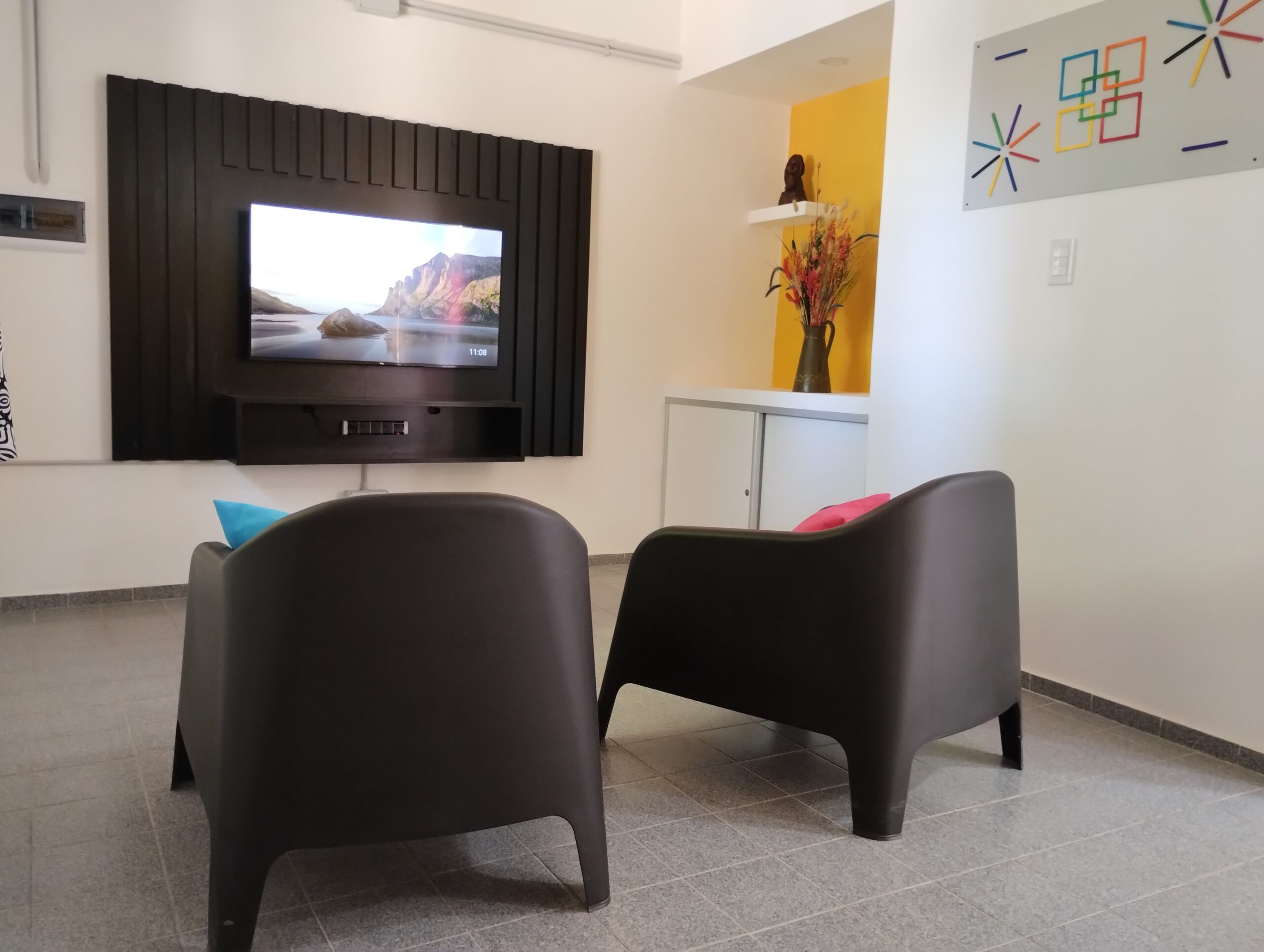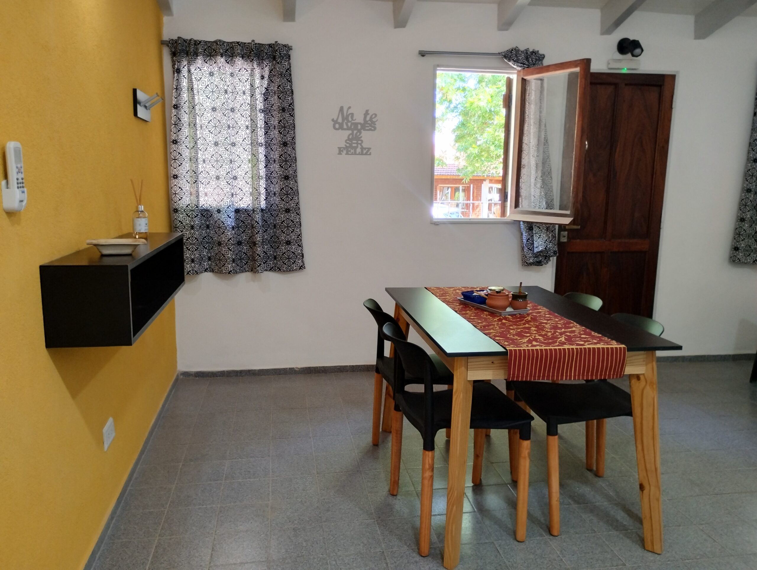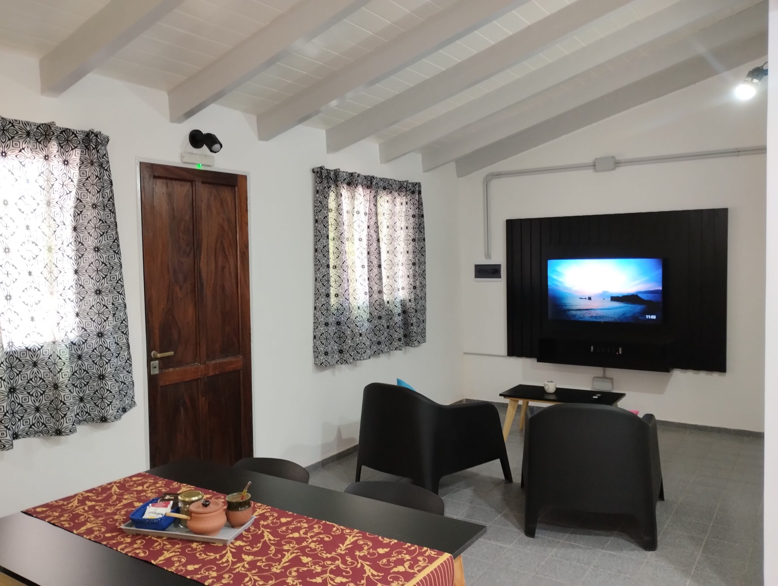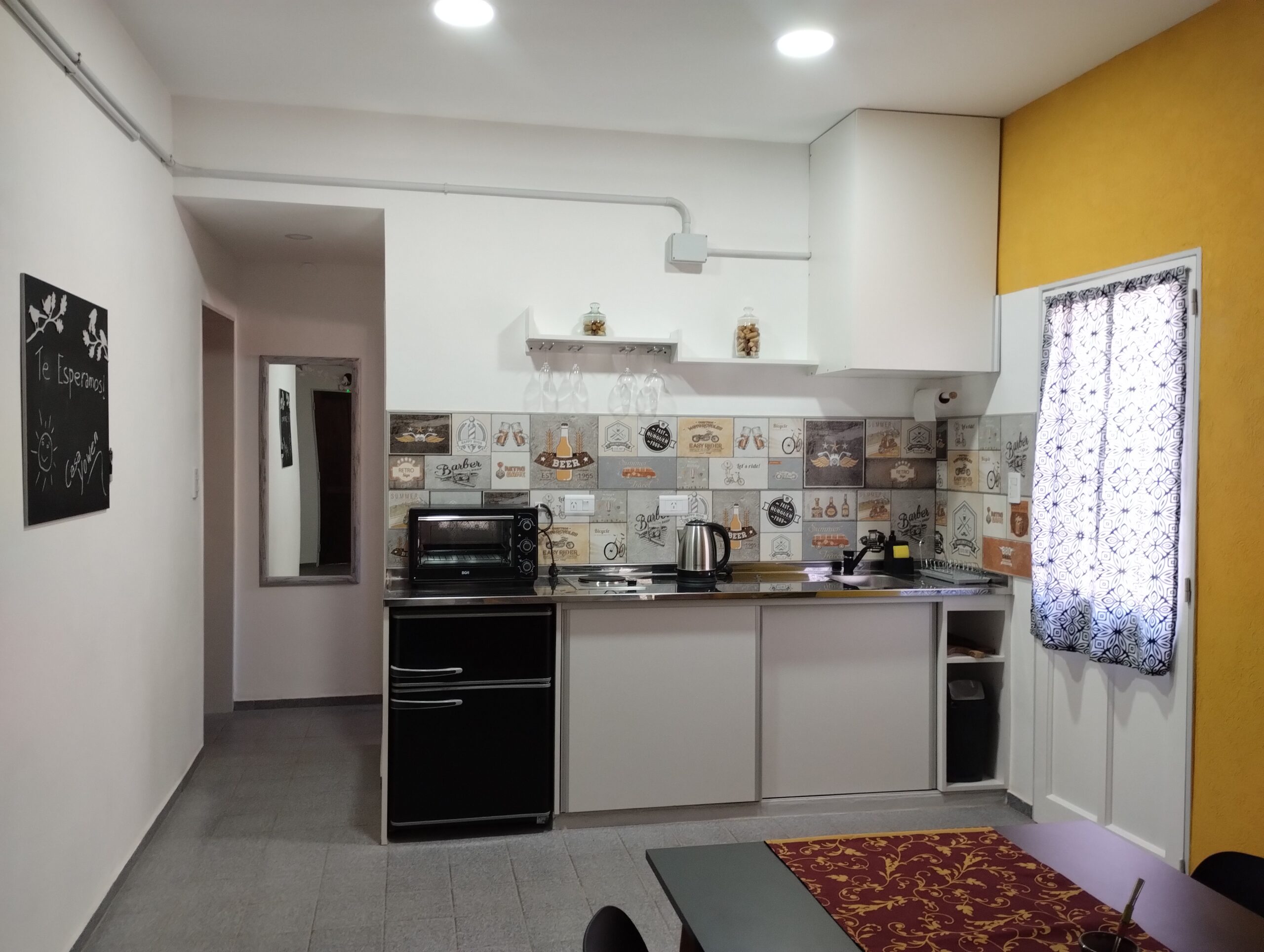 Moderna cocina comedor con vajilla completa, heladera con freezer, horno eléctrico, pava eléctrica, termotanque y anafe. Living con TV smart de 43 pulgadas con Android TV, Aire Acondicionado Frio/Calor, WiFi exclusivo, Cochera cubierta, caja de seguridad.