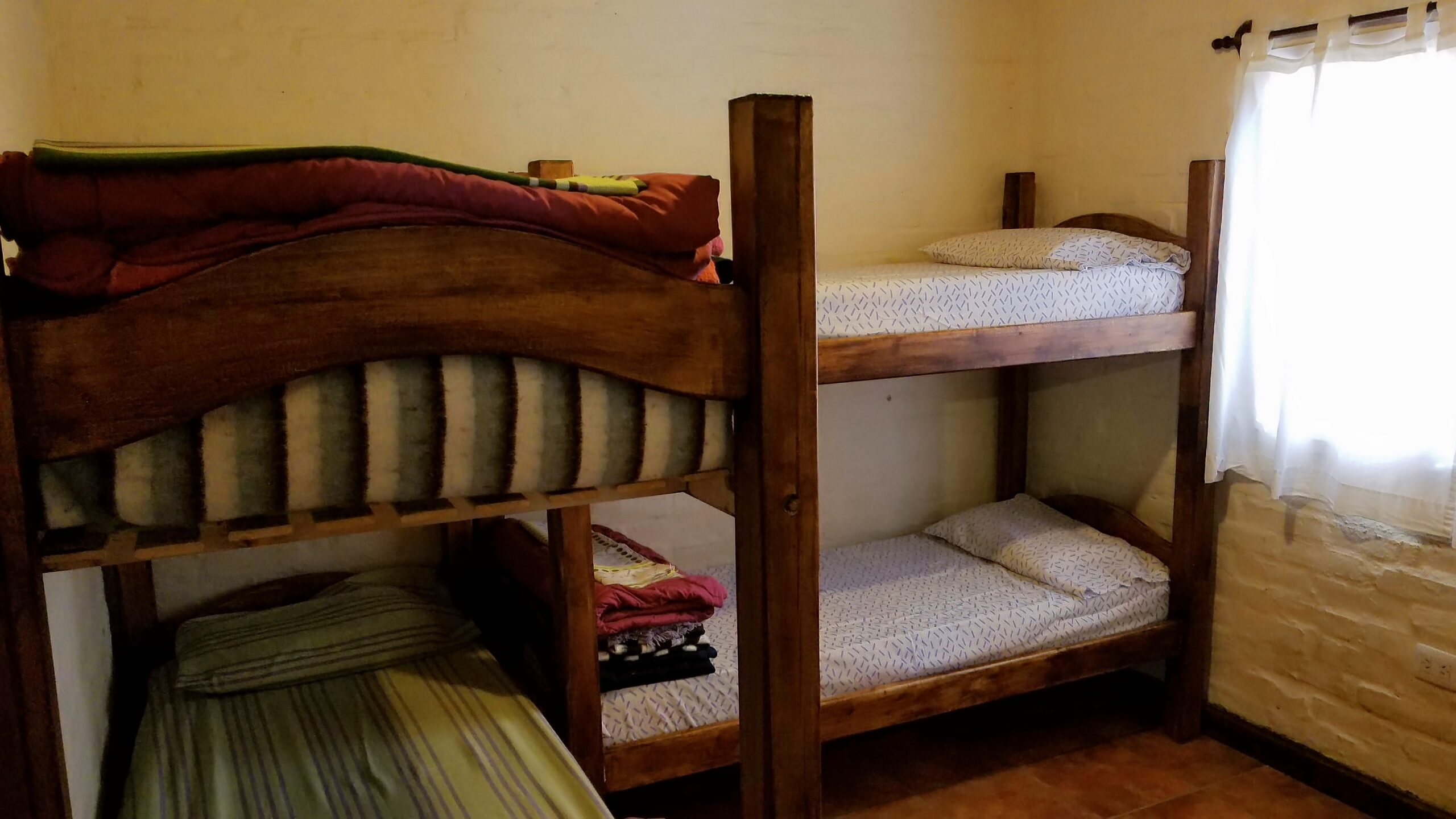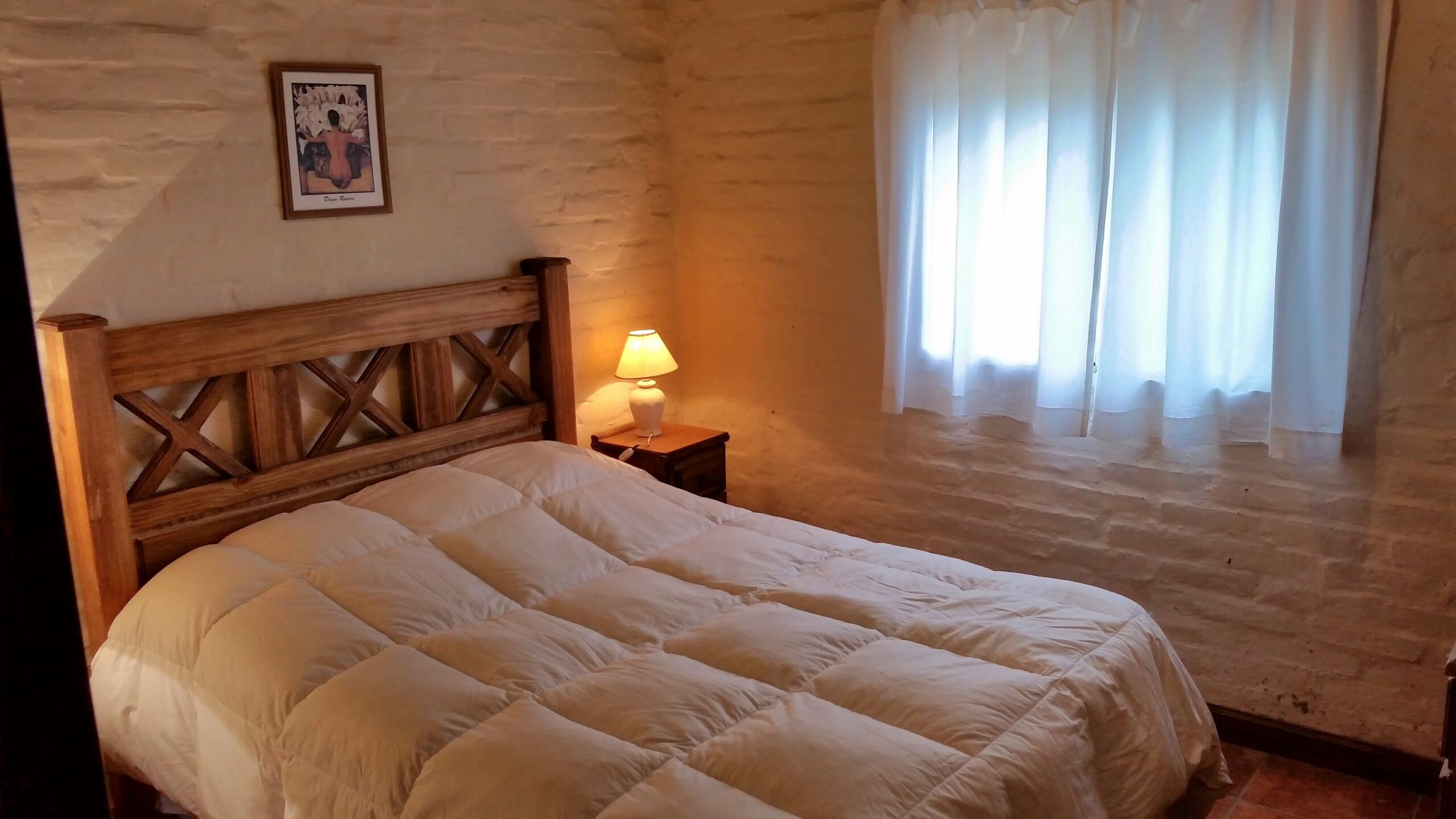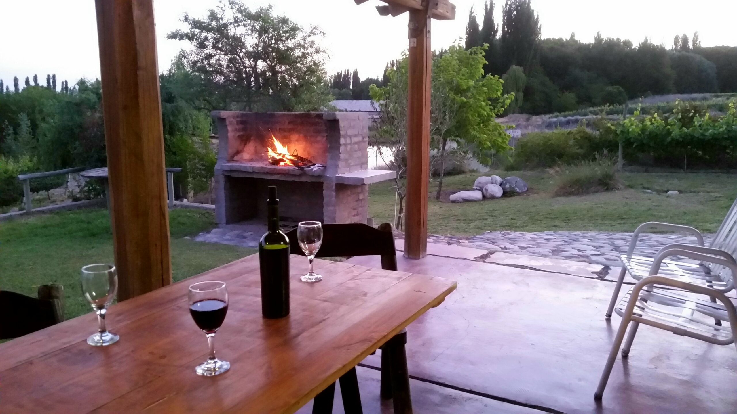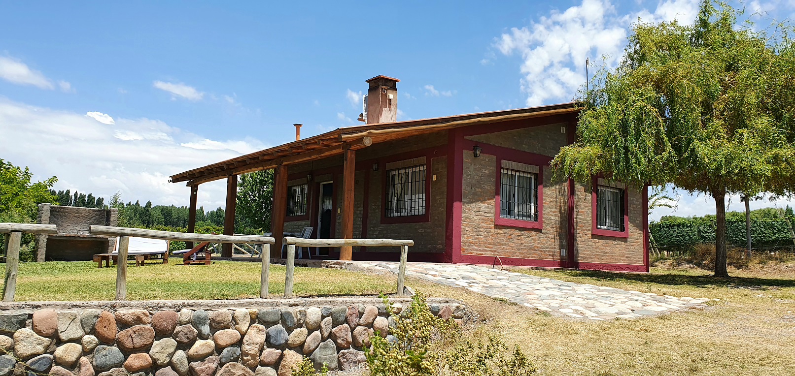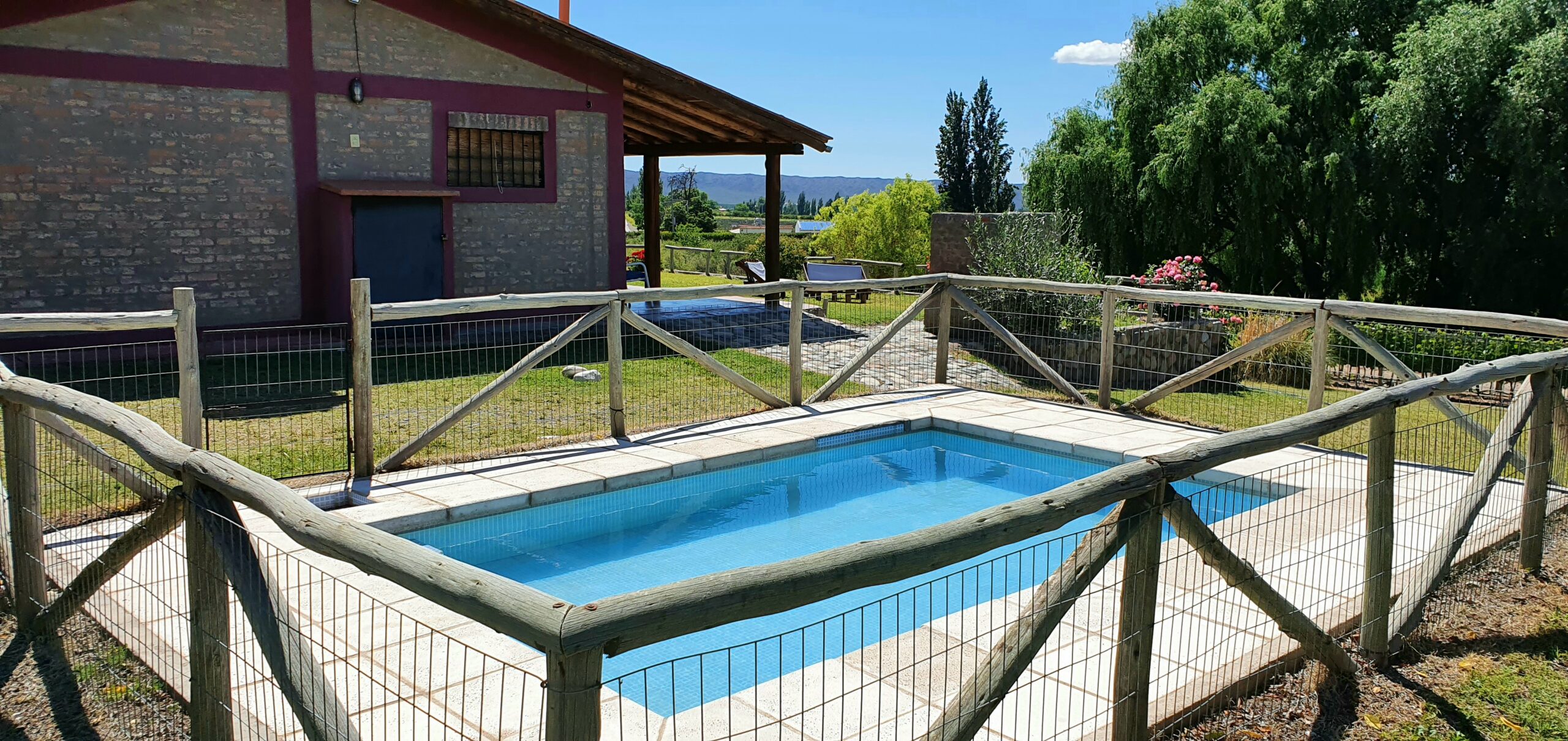 Equipada para 6/7 personas, de estilo rústico con ambientes cálidos y acogedores, tiene 2 dormitorios, uno con sommier 2 1/2 plazas, el otro con 2 cuchetas con 4 camas de 1 ½ plazas, todas con ropa de cama y sábanas, más una cama extra para un niño o persona pequeña,cocina completa equipada con todo, termotanque eléctrico, heladera con frezer, microondas, living comedor, baño completo, calefacción(leña-gas-eléctrica),televisor led 32” smart, Internet de Starlink, direc tv preparo a cargo del cliente, mini componente, galería techada(p/2 vehículos), churrasquera en el exterior y hogar de leña adentro, nueva pileta más grande y de material exclusiva de la casa y amplio jardín rodeado de viñedos MALBEC y frutales.