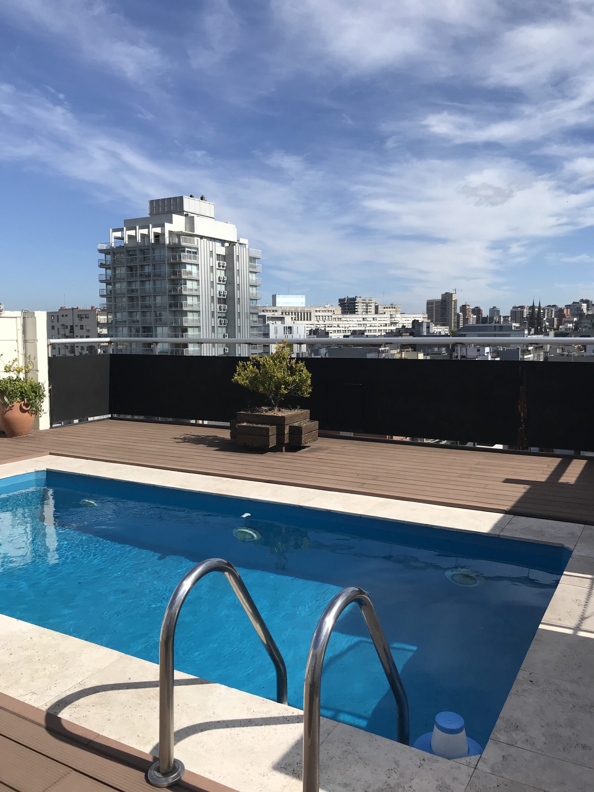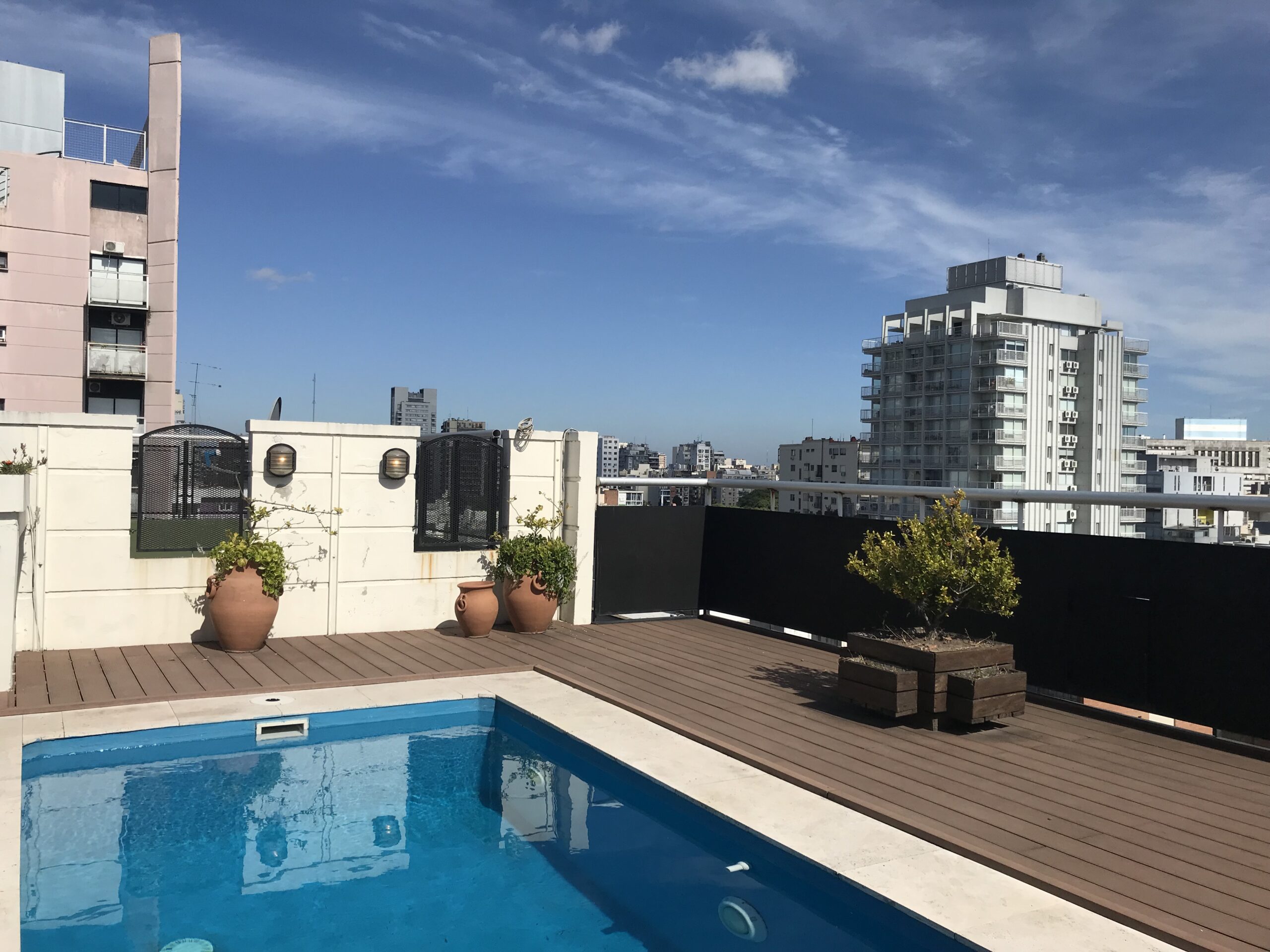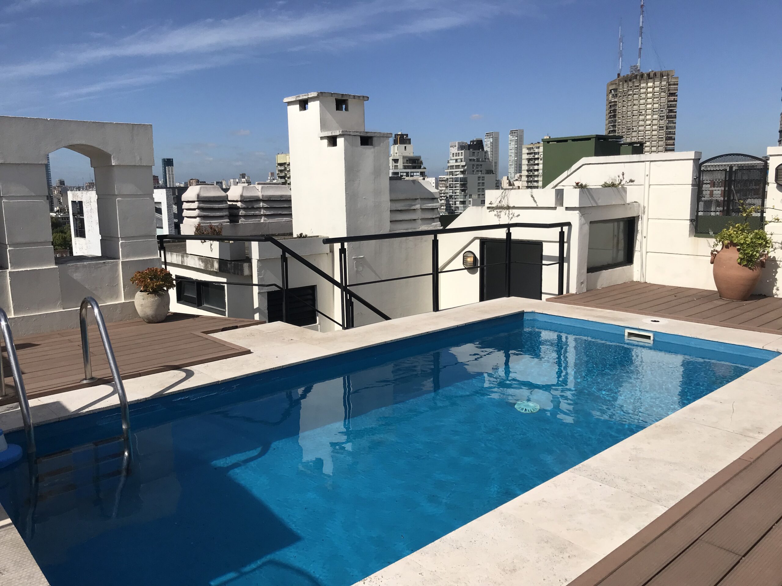El edificio tiene terraza con pileta, perfecta para relajarte al sol o disfrutar del skyline porteño.