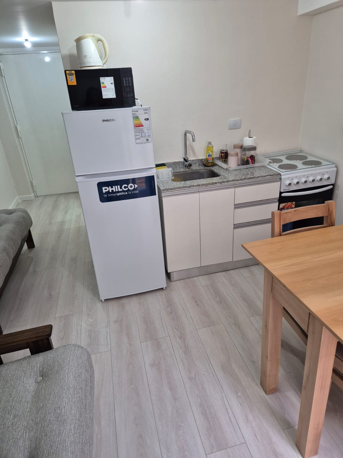 Hermoso dúplex hiper luminoso para 3 personas, una cama matrimonial y un sofá cama, esta muy bien equipado con vajilla, batería de cocina y utensilios. Tiene un patio común y piscina.