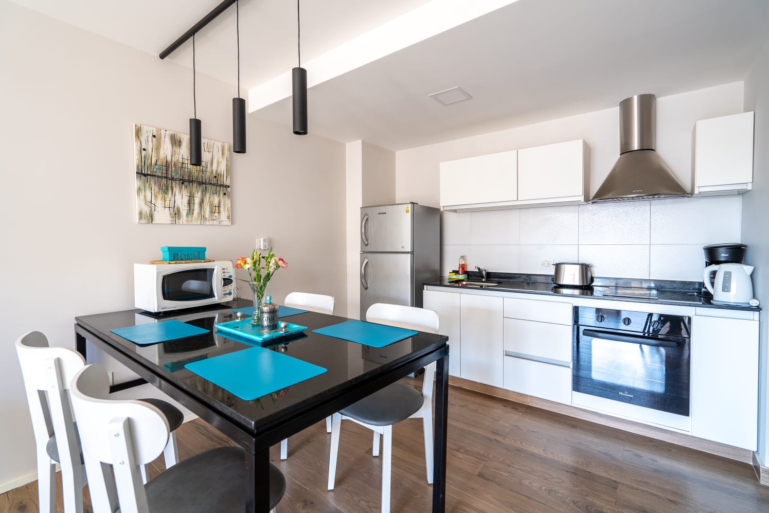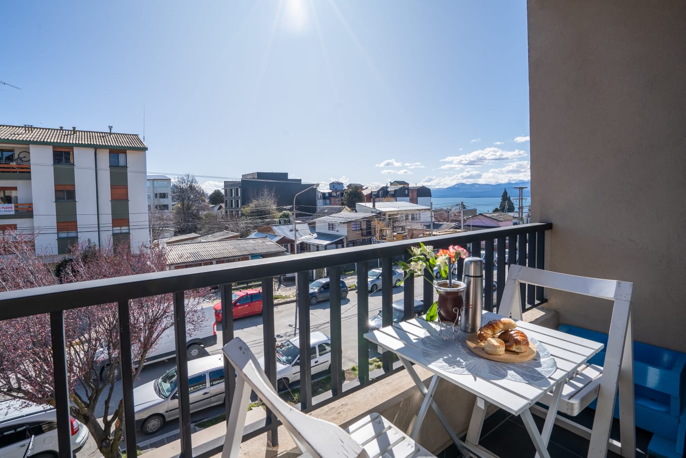 Moderno apartamento de dos ambientes en 46 m2 con balcón, hermoso y práctico en el centro de Bariloche full equipado hasta 4 personas incluye cochera interna. Contaran con blancos Destaca por ser luminoso con vista al lago y montañas en zona tranquila. Los esperamos!
