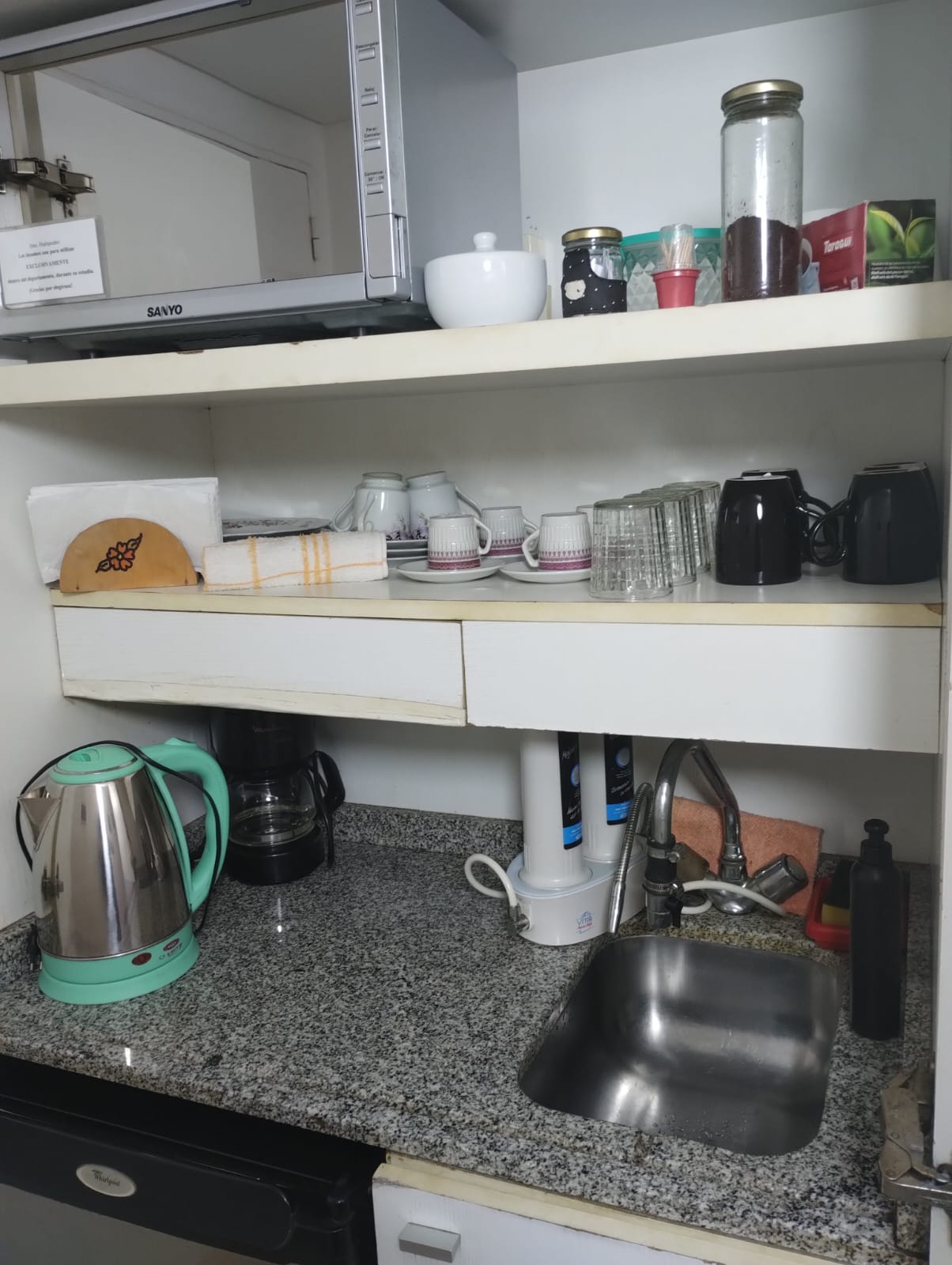Amueblado para 4 personas. Cama King 2 1/2 plaza y Sillon Cama de 2 plazas. Ropa de blanco. Pava electrica. Microhondas. Heladera. Cafetera. Purificador de agua. TV con soporte giratorio. Secador de cabello. Plancha para la ropa. WiFi exclusivo del departamento. Calefaccion y Refrigeracion Central acorde a la estacion. LaveRap en 3º piso. Seguridad 24 hs, cámaras, registro, Personal de Seguridad. 4 Ascensores. Precio por 2 huespedes, 3 o 4 mas plus.