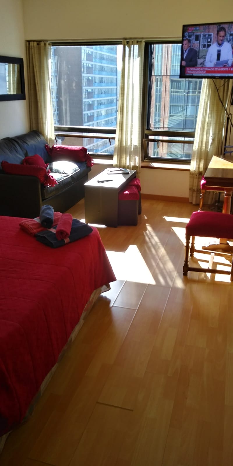 Departamento Monoambiente a la calle muy luminoso, grandes ventanales, piso 20.