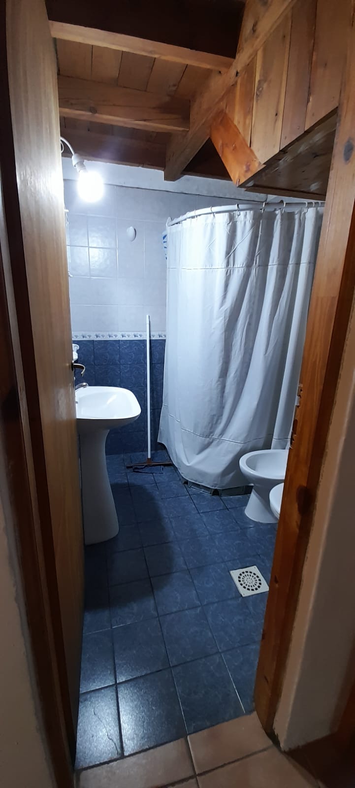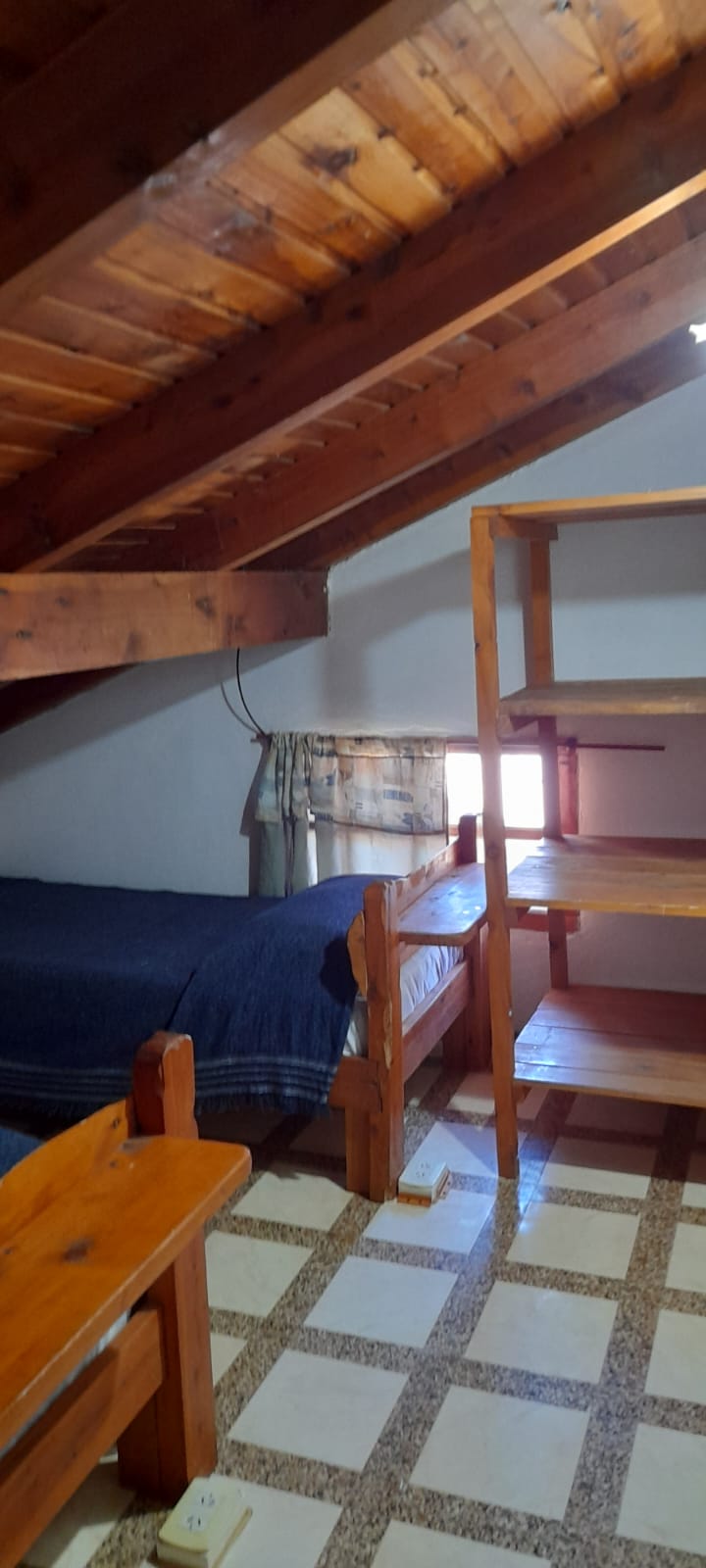 Departamento de un dormitorio, cocina comedor y baño en planta baja, entrepiso con dos camas de una plaza. Ubicación céntrica dentro de la localidad de El Hoyo, acceso inmejorable, cochera cubierta, jardín.
