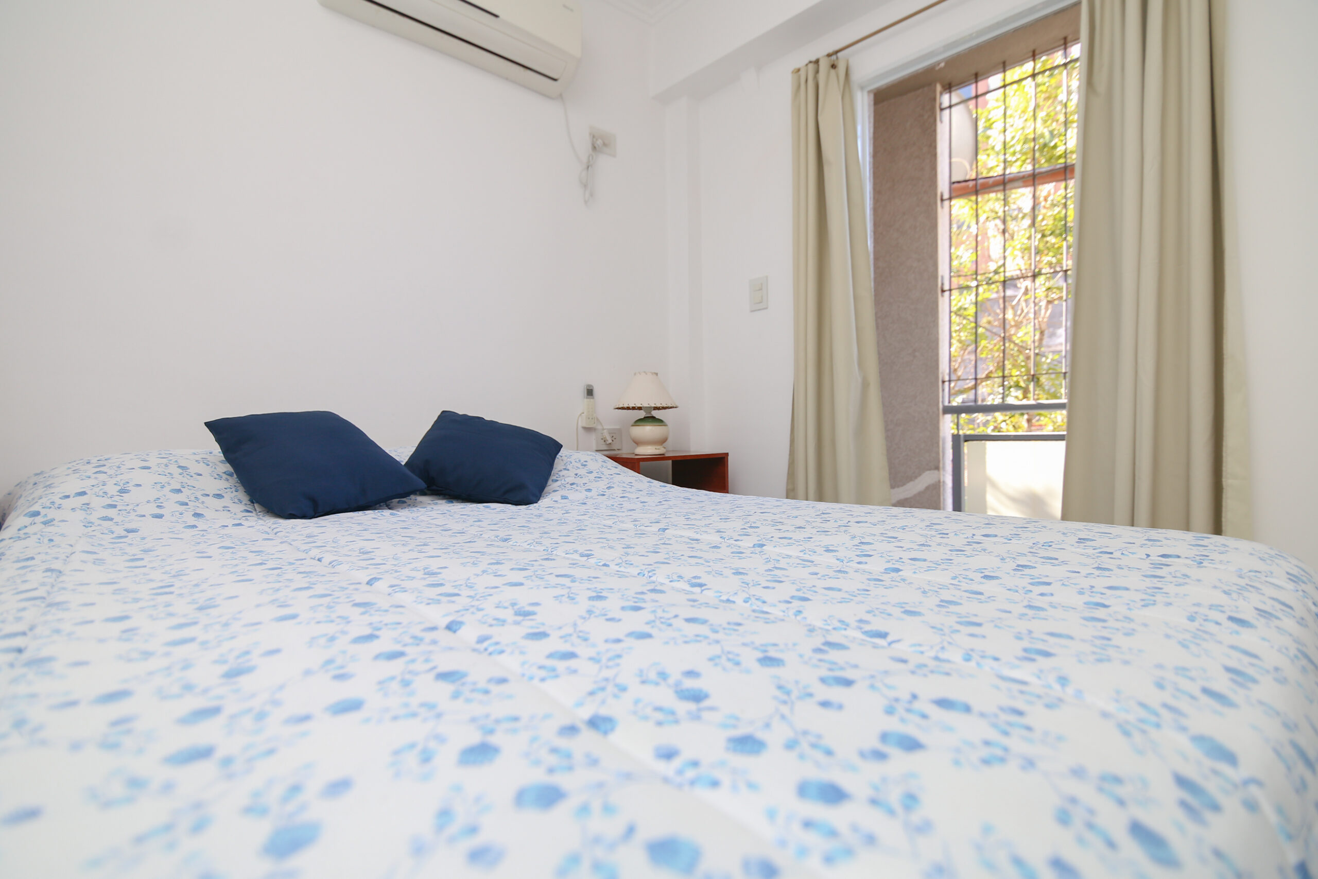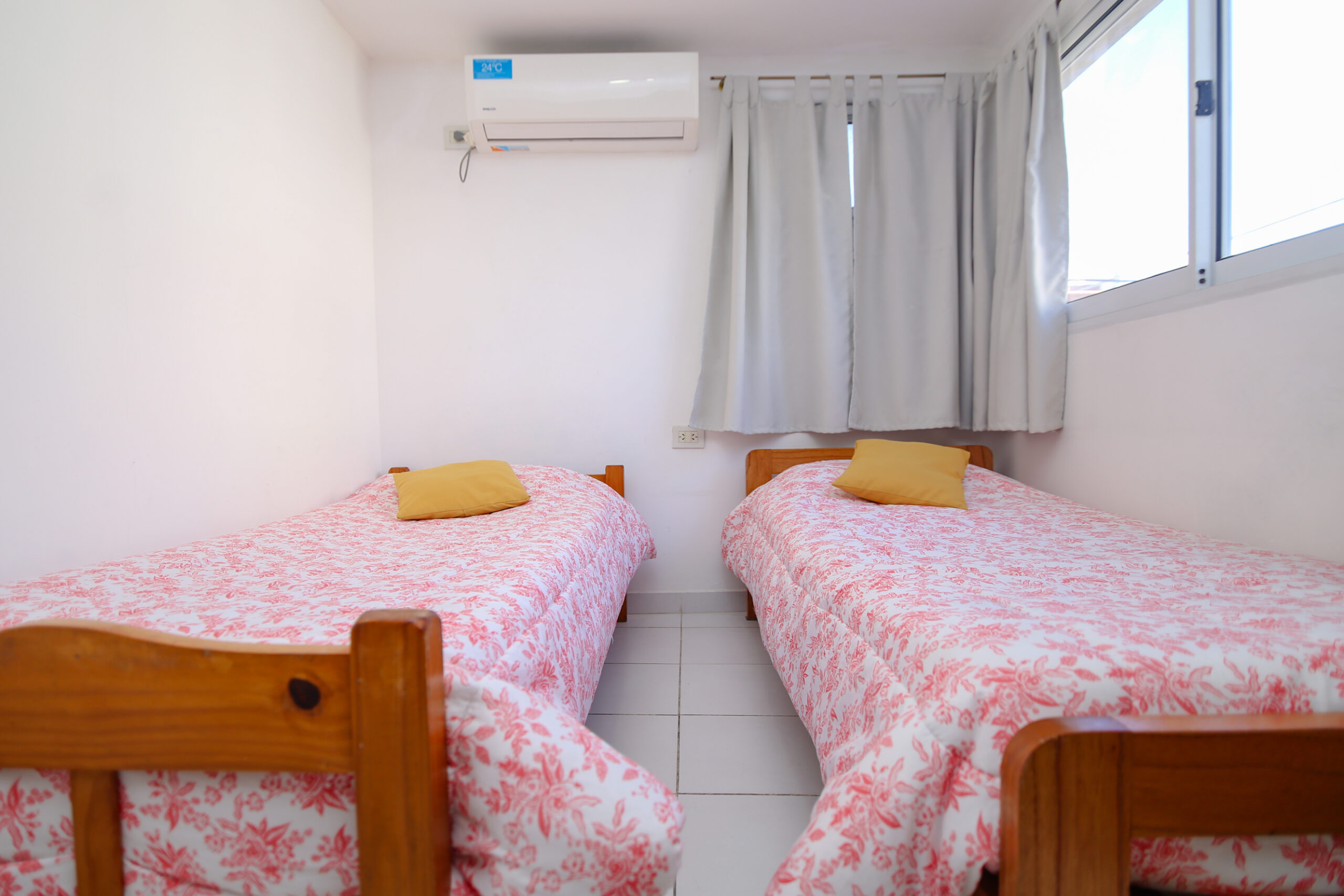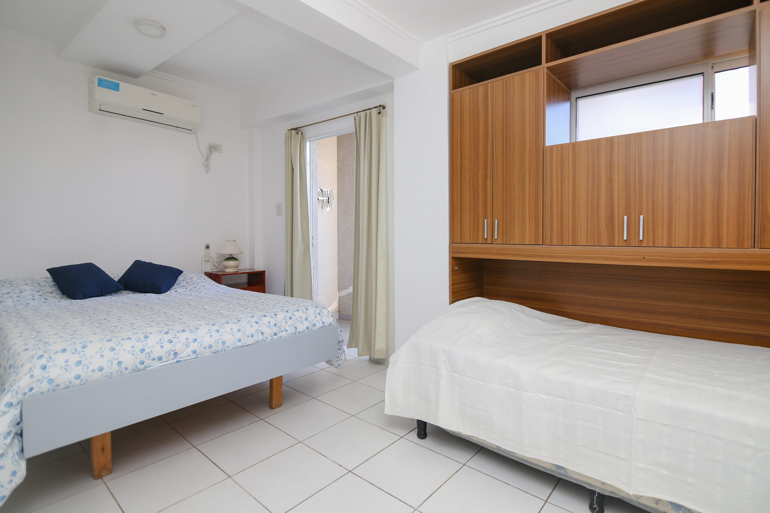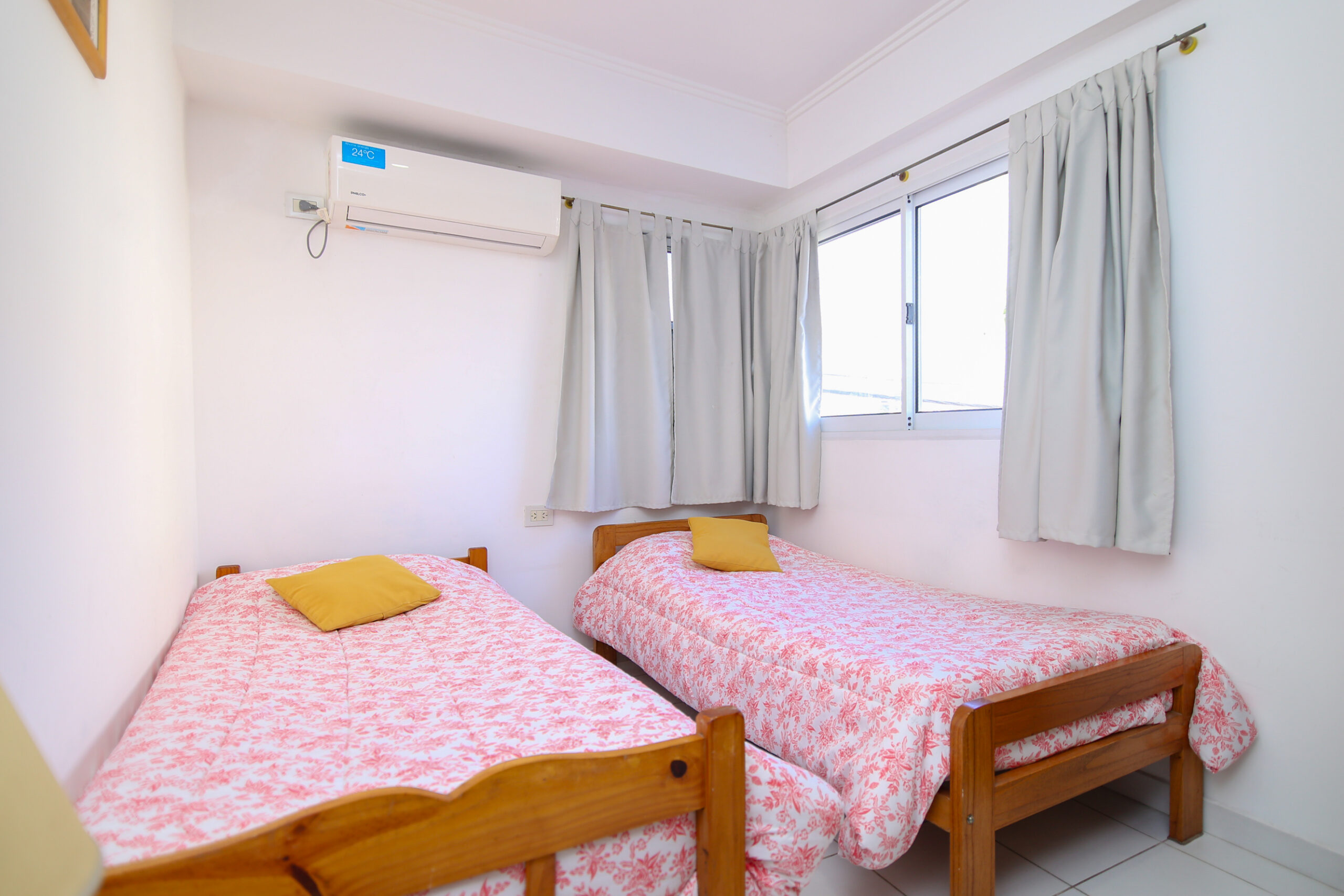 Cochera techada ubicada a 250 metros.Tiene dos dormitorios: 1 habitación con cama matrimonial y sommier individual, y 1 habitación con 2 camas de 1p. Ambas calefaccionadas con aire frio/calor y cortinas black out.