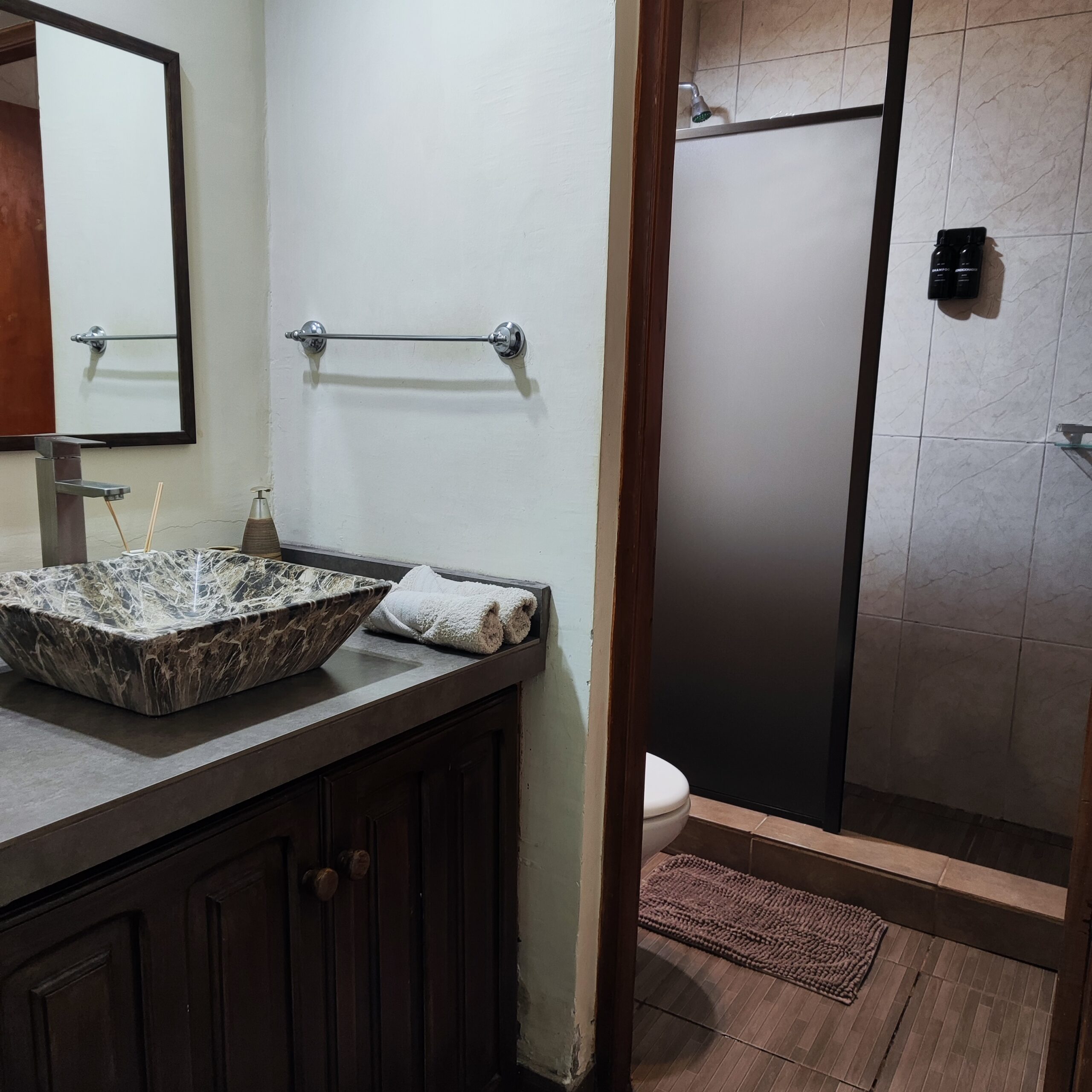 Champú, acondicionador, jabón.