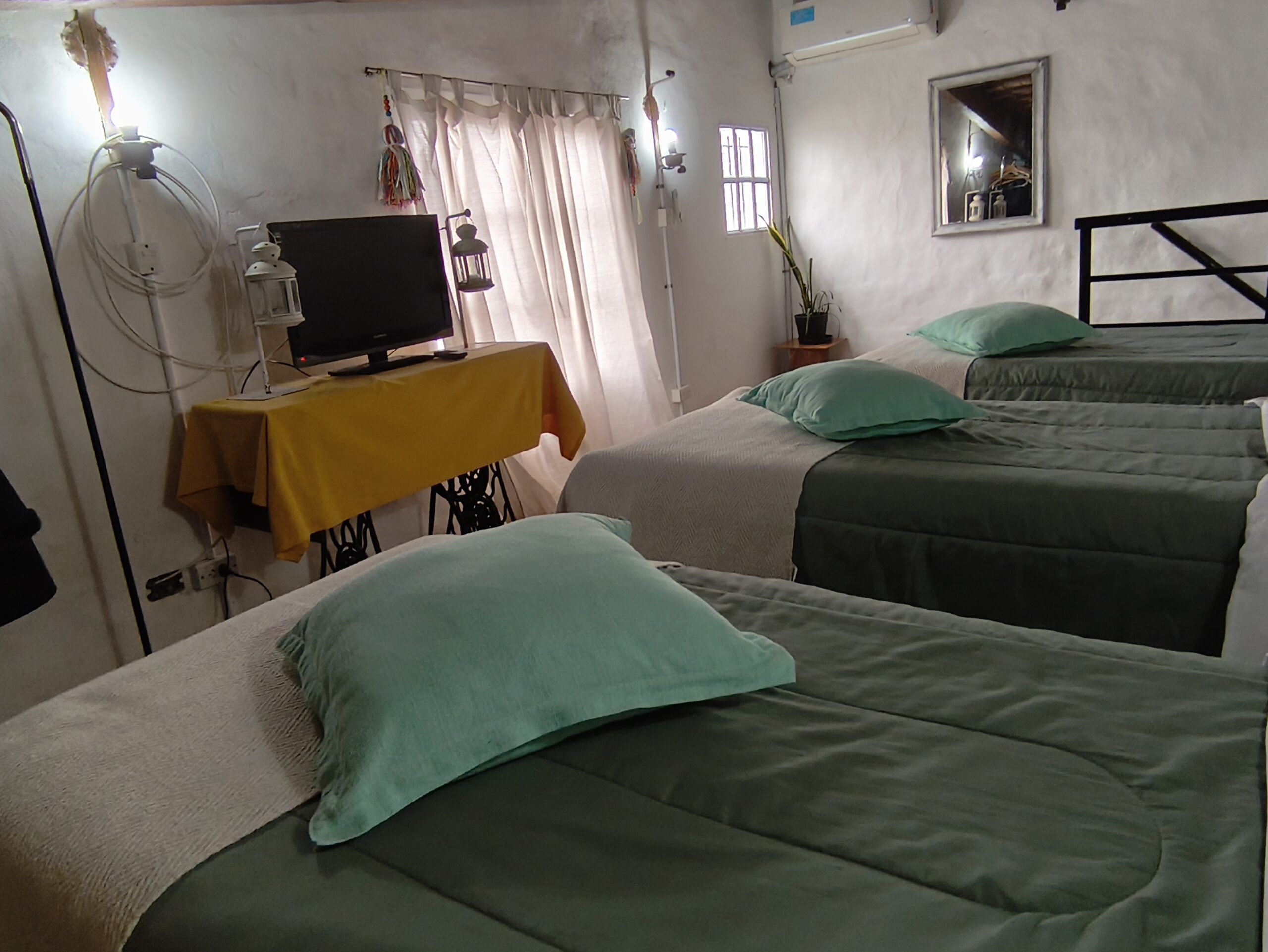 La casa tiene dos habitaciones una con cama matrimonial y otra con tres camas de una plaza, cómoda cocina, comedor, aire acondicionado frio /calor y calefacción en toda la casa, parrilla y dos patios jardín.