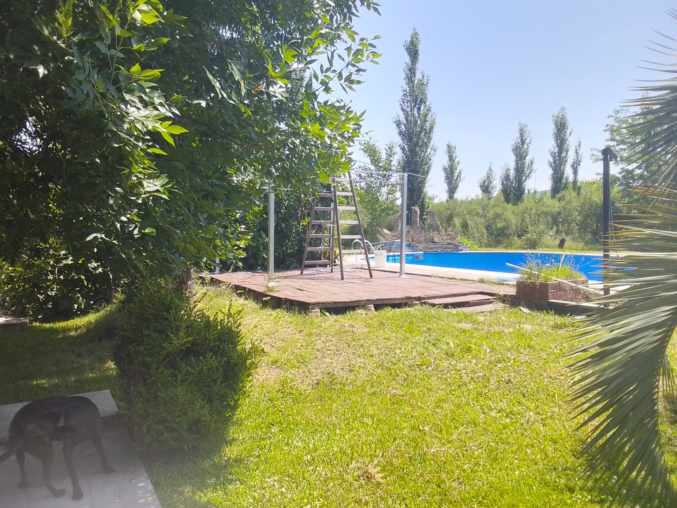 Una pileta amplia, abrazada por un deck con camastros, donde la luz de la tarde descansa como un reflejo tibio sobre el agua.