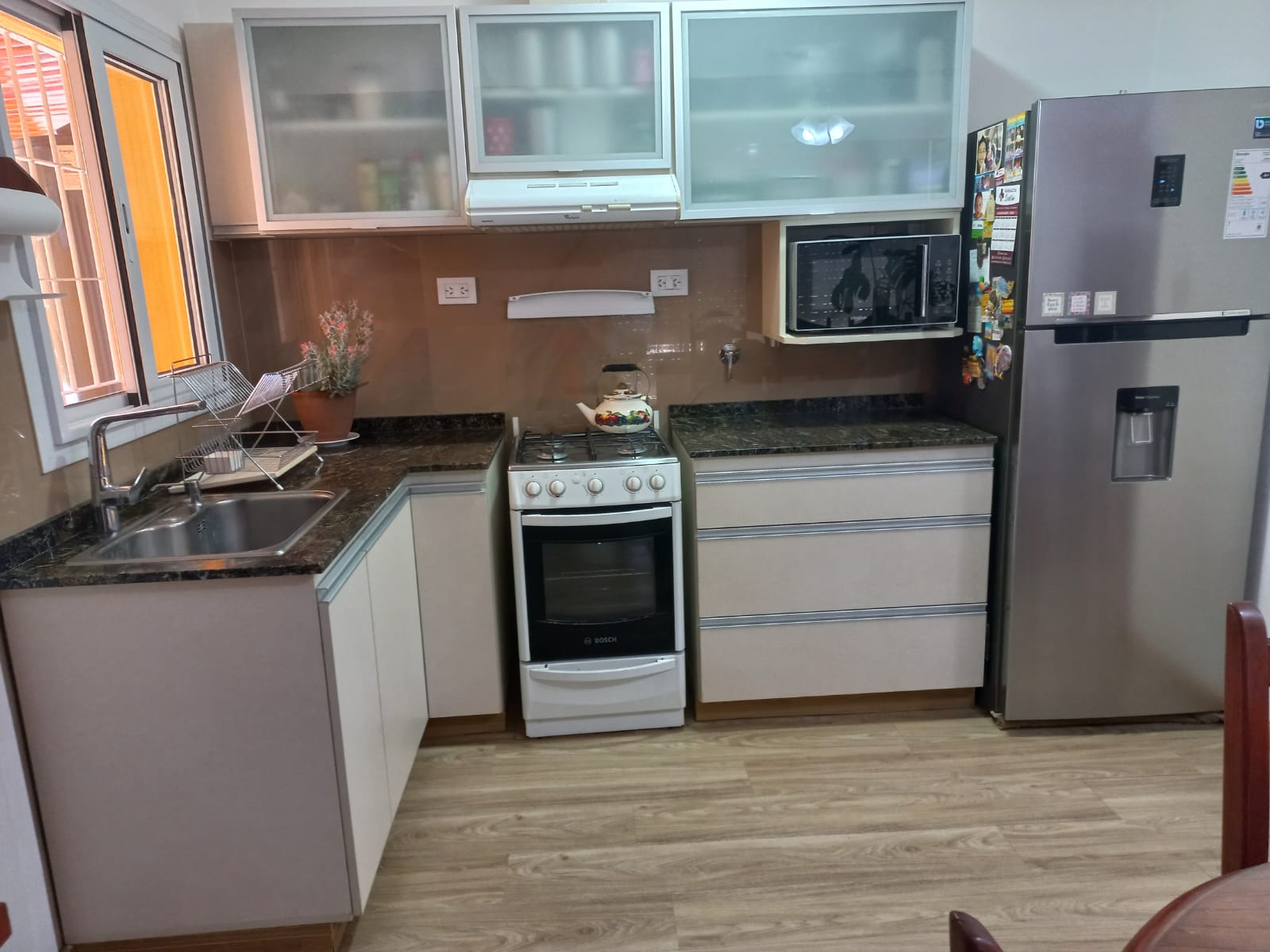 Preciosa cada en Lujan, Bs As. Cuenta con todas las comodidades, ambientes grandes y espacios confortables. Dos camas individuales y una cama doble. Baño impecable