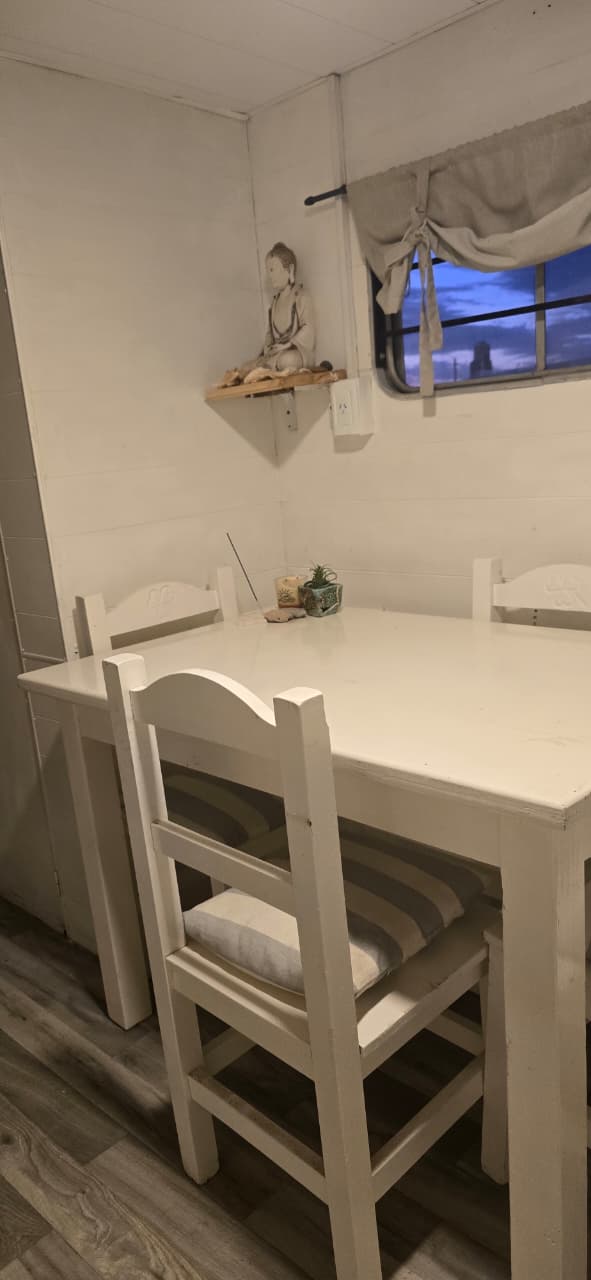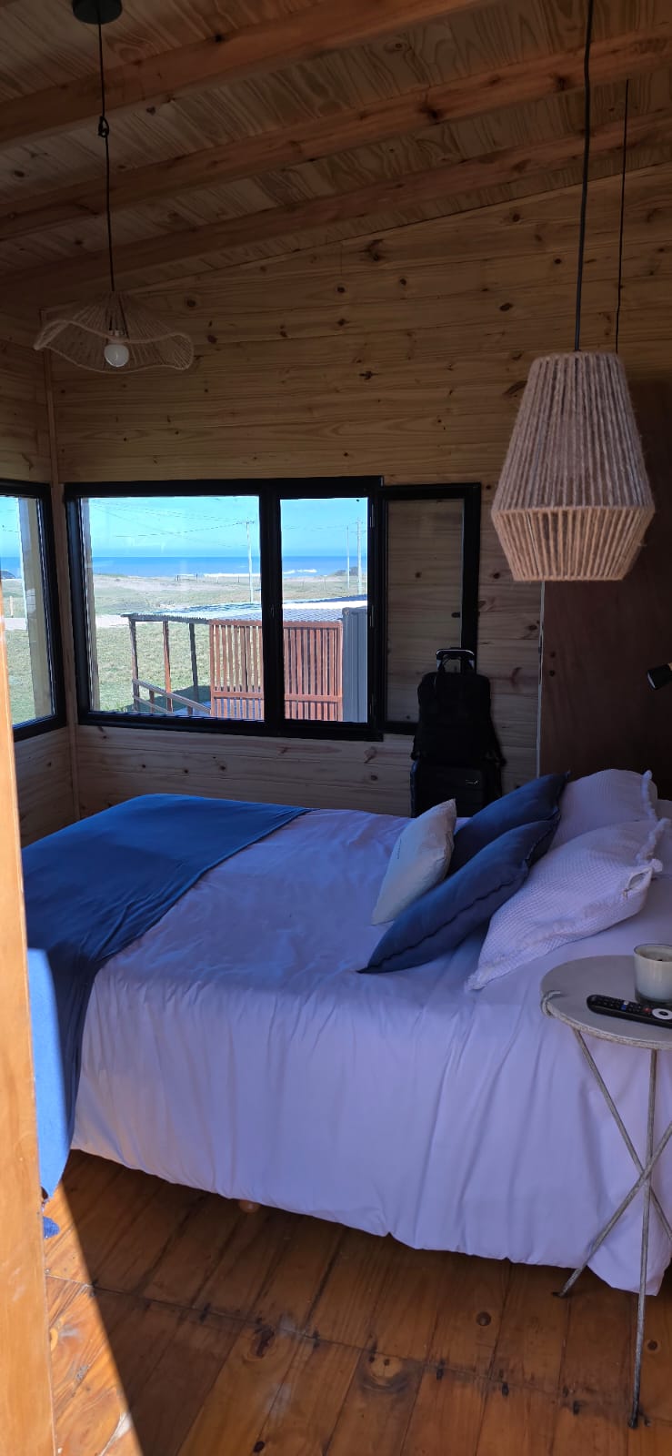 Cabaña a estrenar .Planta baja 4 camas individuales con baño propio , living con mesa y 4 sillas. Cocina completa con todos los utensilios, microndas , Heladera nueva y aire frio/calor. Planta alta dormitorio nuevo con baño en suite. Smart Tv , aire nuevo frio/calor y frigobar .