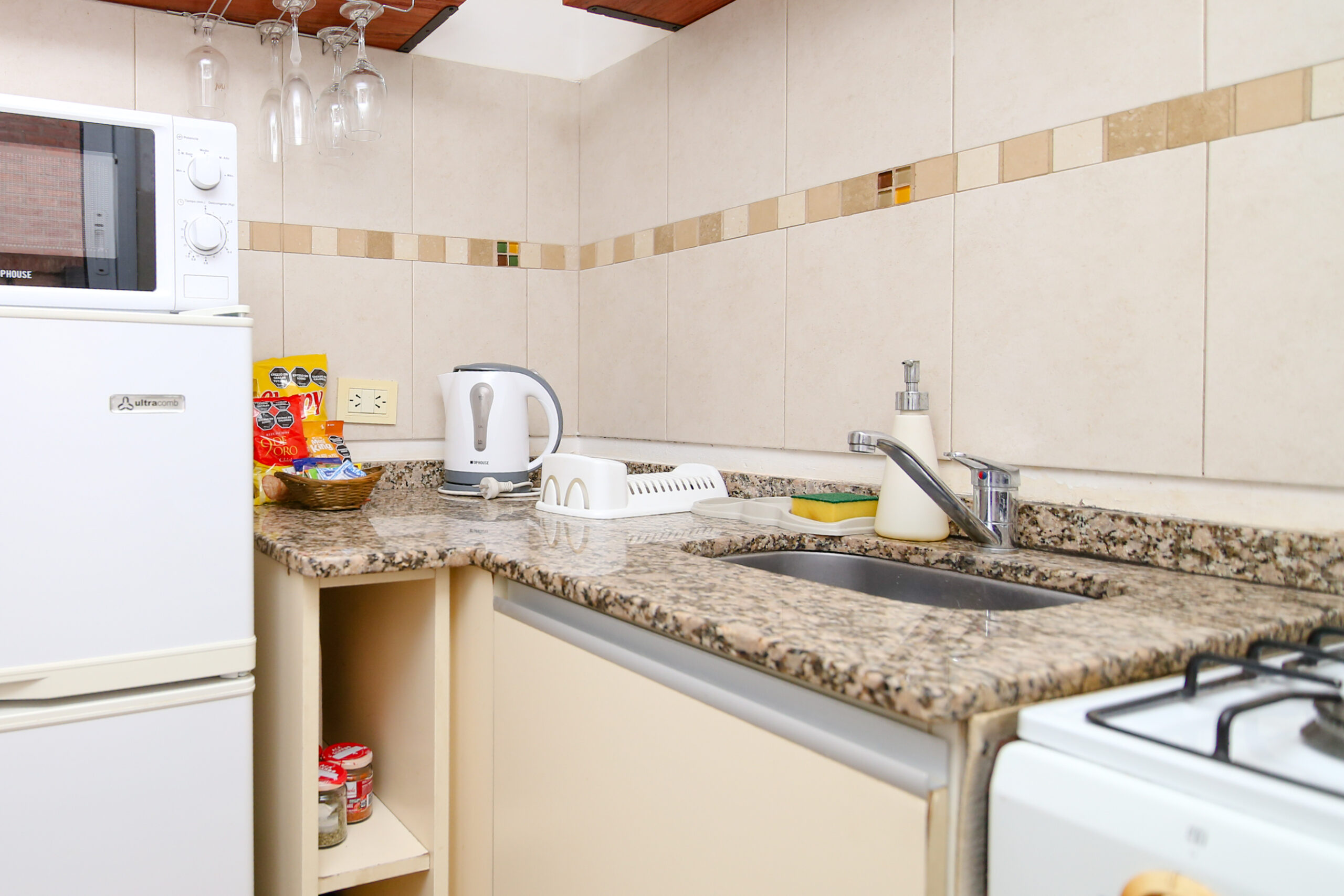 Heladera, cocina y microondas