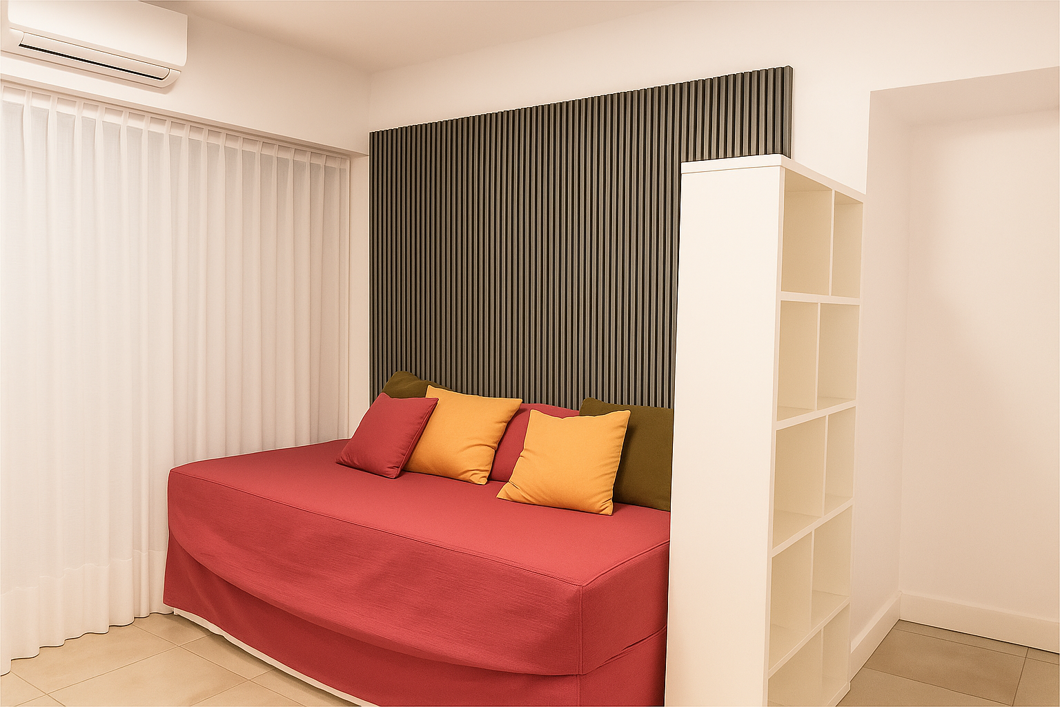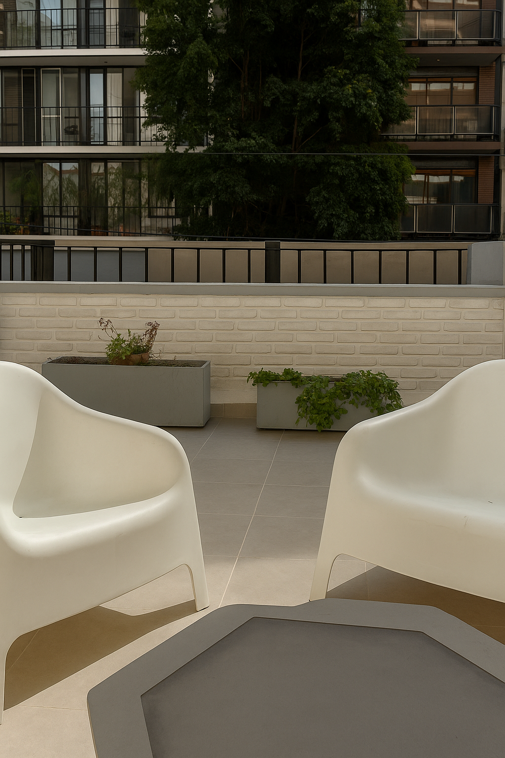 Apartamento moderno y luminoso. El corazón es un patio cerrado con parrilla y mesa para 8, ideal para cocinar y reunirse en grupo. Dormitorio principal sereno; segundo estar con diván para relajarse; espacio de trabajo para home office. Cocina compacta equipada y baño moderno. Acceso privado a toda la unidad y estacionamiento gratuito. A pasos de un parque encantador para caminar, correr o simplemente descansar.