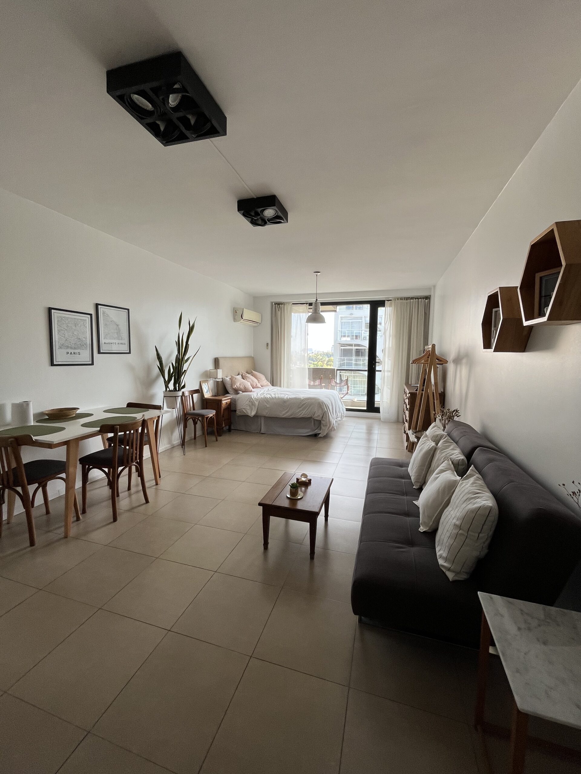 Luminoso monoambiente, en el corazón de Palermo Soho. Apartamento totalmente equipado y amueblado, ideal para 2 o 3 personas. A poca distancia de El Rosedal, Plaza Cortázar y Plaza Armenia. Cerca de la Línea D del Subte y de muchas líneas de colectivos para conectar con el resto de la ciudad.